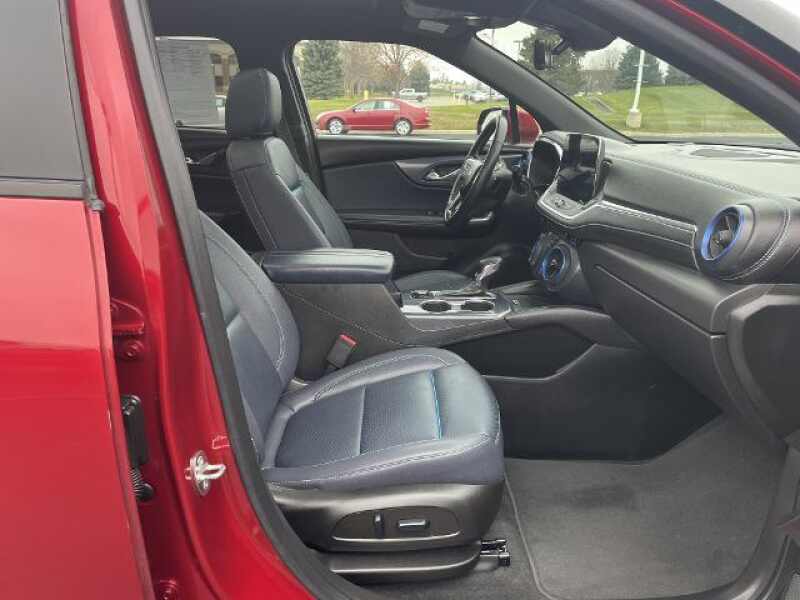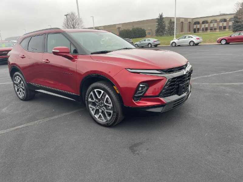 Matt Saxe Chevrolet Is Pleased To Offer This 2023 Chevrolet Blazer RS. AWD. Recent Arrival! 19/26 City/Highway MPG AWD 6-WAY POWER FRONT PASSENGER SEAT ADJUSTER 8-WAY POWER DRIVER SEAT ADJUSTER ADAPTIVE CRUISE CONTROL APPLE CARPLAY/ANDROID AUTO AUTO HIGH-BEAM HEADLIGHTS BOSE PREMIUM 8-SPEAKER AUDIO SYSTEM FEATURE DRIVER CONFIDENCE II PACKAGE ENHANCED AUTOMATIC EMERGENCY BRAKING ENHANCED CONVENIENCE PACKAGE FRONT DUAL ZONE A/C, HD SURROUND VISION HEATED REAR OUTBOARD SEATING POSITIONS HEATED STEERING WHEEL MEMORY SETTINGS FOR DRIVER SEAT & EXTERIOR MIRRORS NAVIGATION SYSTEM POWER DRIVER SEAT POWER LIFTGATE POWER PANORAMIC TILT-SLIDING SUNROOF POWER TILT & TELESCOPING STEERING COLUMN PREFERRED EQUIPMENT GROUP 1RS, RADIO CHEVROLET INFOTAINMENT 3 PREMIUM SYSTEM REAR CAMERA MIRROR REAR CAMERA MIRROR WASHER REAR PARK ASSIST W/AUDIBLE WARNING REMOTE KEYLESS ENTRY SAFETY ALERT SEAT SIRIUSXM W/360L STEERING WHEEL MOUNTED AUDIO CONTROLS TURN SIGNAL INDICATOR MIRRORS VENTILATED DRIVER & FRONT PASSENGER SEATS Matt Saxe Chevrolet's number one goal is to make sure that our customers are Completely Satisfied. Not just during a sale, but for all of your automotive needs for thousands of miles down the road! Each used car on the lot goes through an extensive safety inspection, oil change, and thorough detailing. You can leave here with the peace of mind knowing that your new used car is clean and in safe mechanical condition. We even go the extra mile and change the windshield wipers on every vehicle. Each vehicle is ready for you to make it 'yours'!.