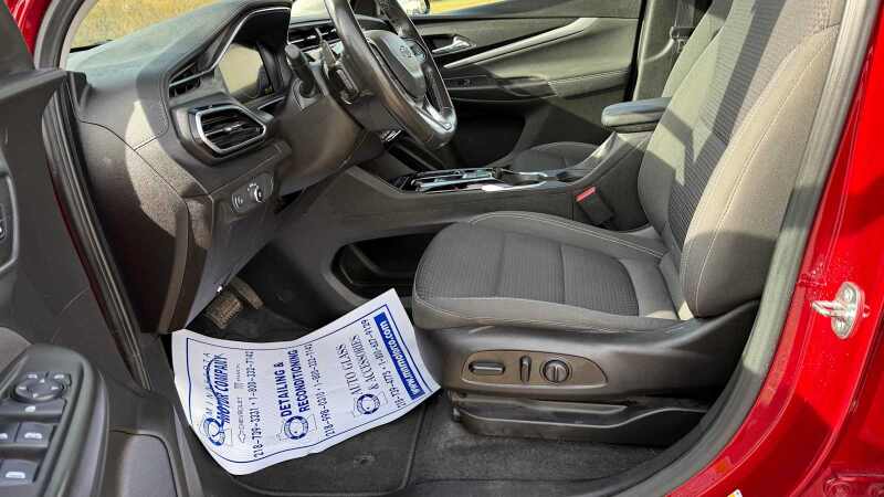 COMFORT PACKAGE includes (A2X) driver 8-way power seat adjuster, driver 2-way power lumbar, (KA1) heated driver and front passenger seats, (N34) leather-wrapped flat-bottom steering wheel and (KI3) heated steering wheel, DRIVER CONFIDENCE PACKAGE includes (UKC) Lane Change Alert with Side Blind Zone Alert, (UD7) Rear Park Assist and (UFG) Rear Cross Traffic Alert, AUDIO SYSTEM, CHEVROLET INFOTAINMENT 3 PLUS SYSTEM 10.2 diagonal HD color touchscreen, AM/FM stereo, Bluetooth audio streaming for 2 active devices, Apple CarPlay and Android Auto capable, enhanced voice recognition, in-vehicle apps, cloud connected personalization for select infotainment and vehicle settings. Subscription required for enhanced and connected services after trial period. (STD). Chevrolet LT with Cherry Red Tintcoat exterior and Jet Black interior features a Electric Motor. Serviced here, Originally bought here Very Nice