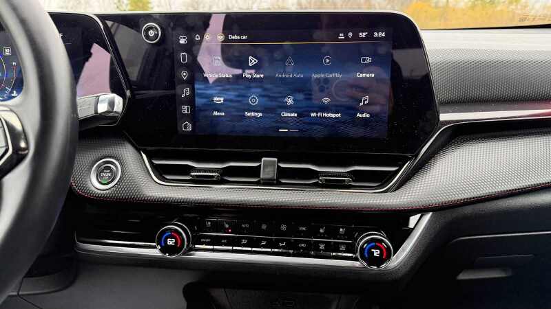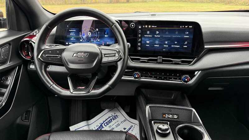 SUNROOF, POWER, DUAL GLASS, PANORAMIC, SLIDING with power sunshade, SAFETY AND TECHNOLOGY PACKAGE includes (DRZ) Rear Camera Mirror, (T3U) front fog lamps, (UKK) Rear Pedestrian Alert, (UV2) HD Surround Vision and (UVX) Traffic Sign Recognition. CONVENIENCE PACKAGE III includes (A7K) 8-way power front passenger seat adjuster, (KU1) ventilated driver seat (KU3) ventilated front passenger seat, (KA6) heated rear outboard seats, (AT9) 2-way power front passenger lumbar seat adjuster and (A45) memory settings, ENGINE, 1.5L TURBO DOHC 4-CYLINDER, SIDI, VVT (STD), TRANSMISSION, 8-SPEED AUTOMATIC (STD). Chevrolet AWD RS with Radiant Red Tintcoat exterior and Black with Red Accents interior features a 4 Cylinder Engine with 175 HP at 5600 RPM*. Autocheck 1-Owner