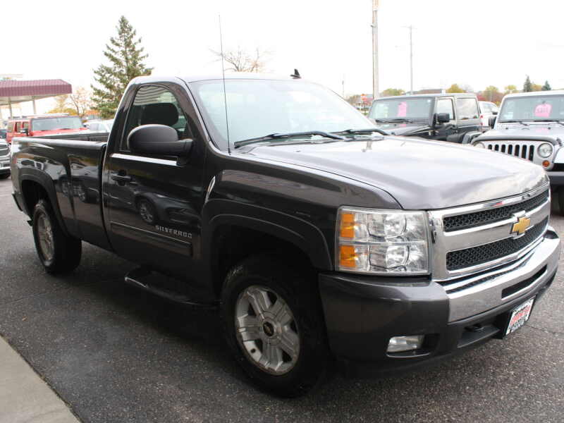 For sale we have a 2011 Chevy Silverado 1500 Regular Cab Long Box 4WD LT Z71. This is a clean 2 owner local senior trade with only 161k miles! Great features such as 5.3L V8 engine, 4WD, Z71 offroad pkg, power seat, c.d/mp3/aux, tow pkg w/ built-in brake box, bedliner, alloy wheels w/ nice all terrain tires, step bars, keyless entry w/ remote start, power windows and locks, cruise, tilt, air and more! Priced at just $7,990
