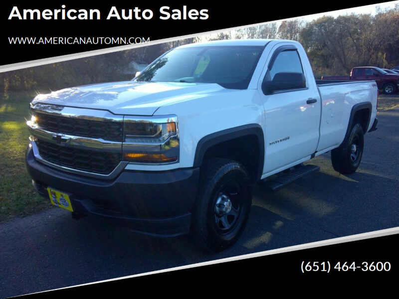 FREE $100 AMAZON GIFT CARD WITH QUALIFYING PURCHASE!!! This hard to find 1 owner regular cab long box Silverado has some great options like 4 wheel drive, 5.3L V-8, tow package, rubber floors, cruise control, power windows, power locks, air conditioning, Bluetooth, running boards, and so much more. We have great financing with low monthly payments. Call us now American Auto Sales 651-464-3600. WE NEED YOUR TRADES!!! Nosotros hablamos espaol