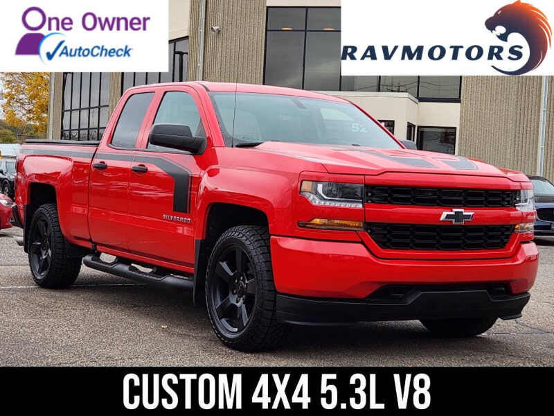BRAND NEW BRAKES! BRAND NEW ROTORS! BRAND NEW TIRES! FRESH OIL CHANGE! This vehicle comes with a clean title, no accidents or damage ever reported, and only one previous owner! Available at our Crystal location, Tackle any job or terrain with this rugged and dependable 2016 Chevrolet Silverado Custom 4X4. Under the hood, the powerful and respected 5.3L V8 engine delivers the reliable horsepower and torque you need for heavy hauling and towing, while still achieving a solid 22 HWY MPG. The proven 4X4 capability ensures superior traction and control, making it ready for winter roads or demanding worksites. As a Custom trim, it provides a clean, focused, and no-nonsense interior with all the essential modern connectivity features. This Silverado boasts the classic, bold styling and durability that Chevrolet trucks are known for, offering years of dependable service. If you need a tough, V8-powered truck that is built to work and ready for anything, this exceptional 4X4 is the perfect choice for you. Come on down to RavMotors of Crystal to test-drive our cars! We'll be happy to help you find the right car at the right price. Call for vehicle availability at 763-401-4242 or email us at ravmotorsofcrystalgmail.com. Make sure to check out our inventory at www.ravmotors.com We stand behind all of our cars. We are open from 1000 AM - 700 PM on Monday-Thursday and 1000 AM - 600 PM on Friday-Saturday.