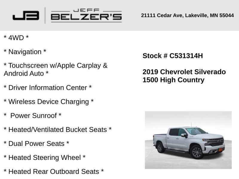 * 4WD * 8-Inch Navigation Touchscreen w/Apple Carplay & Android Auto * Driver Information Center * Wireless Device Charging * Power Sunroof * Heated/Ventilated Bucket Seats * Dual Power Seats * Heated Steering Wheel * Heated Rear Outboard Seats * Side Blind Zone Alert * Rear Cross Traffic Alert * Bluetooth Hands Free * Cruise Control * Remote Start * 20 Inch Alloy Wheels * Bose Premium Sound * HID Headlamps * LED Fog Lamps * Keyless Open/Keyless Start * Power Sliding Rear Window * Front & Rear Park Assist * Dual-Zone Automatic Climate Control * Rear Camera * Trailering Package * Integrated Trailer Brake Controller * Spray-On Bedliner * Z71 Off-Road Suspension * LED Box Lighting * Locking Rear Differential * 2-Speed Transfer Case * Satellite & HD Radio *