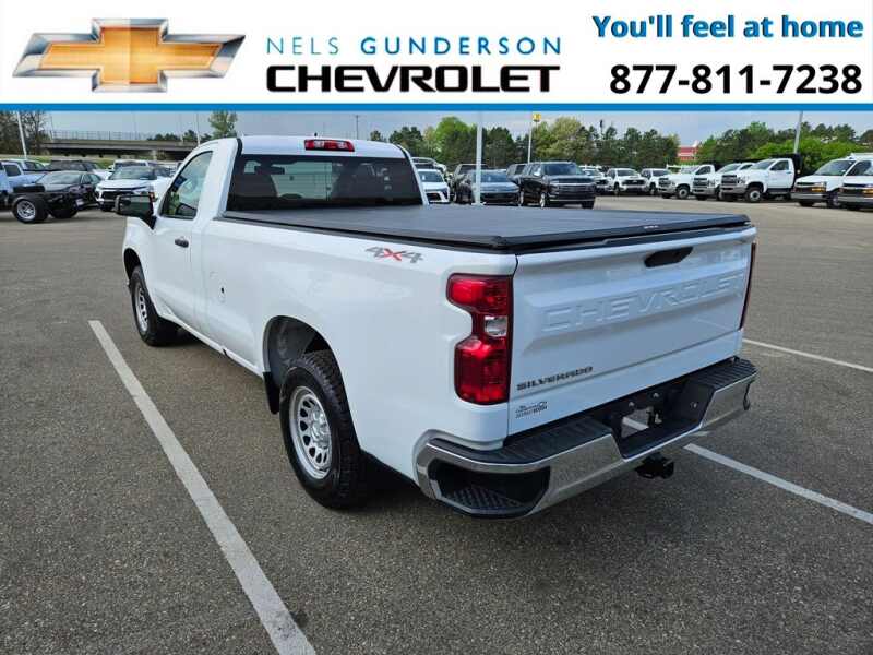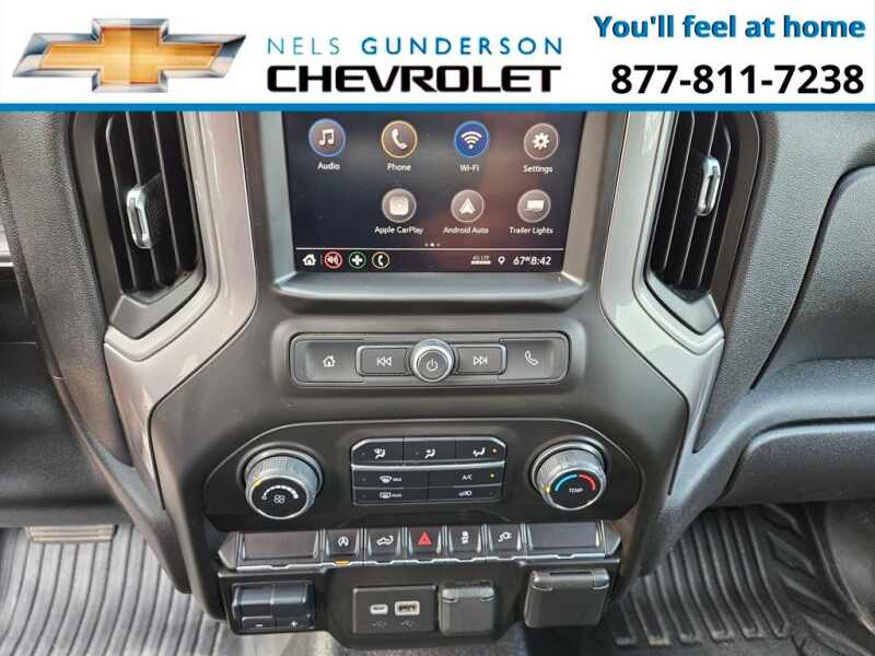Nels Gunderson Chevrolet is delighted to offer this reliable 2021 Chevrolet Silverado 1500 WT in Summit White, beautifully equipped with Preferred Equipment Group 1WT (170 Amp Alternator, 3.5 Diagonal Monochromatic Display, Black (Semi-Gloss) Front Bumper, Black (Semi-Gloss) Rear Bumper, Black Grille, Black Manual Outside Mirrors, Bluetooth For Phone, Front Frame-Mounted Black Recovery Hooks, Locking Tailgate, Manual Door Locks, Manual Tilt Wheel Steering Column, Manual Windows, Rubberized-Vinyl Floor Covering, Solar Absorbing Tinted Glass, and Standard Tailgate), Trailering Package (Hitch Guidance), WT Convenience Package (Deep-Tinted Glass, Electric Rear-Window Defogger, Electronic Cruise Control, EZ Lift Power Lock & Release Tailgate, Heated Power-Adjustable Outside Mirrors, Power Door Locks, Power Front Windows w/Driver Express Up/Down, Power Front Windows w/Passenger Express Down, and Remote Keyless Entry), WT Value Package, 8-Speed Automatic, 4WD, Black Cloth, 120-Volt Bed Mounted Power Outlet, 120-Volt Instrument Panel Power Outlet, 2 Speakers, 220 Amp Alternator, 3.42 Rear Axle Ratio, 4-Wheel Disc Brakes, 40/20/40 Front Split Bench Seat, 4G LTE Wi-Fi Hot Spot Capable, ABS brakes, Air Conditioning, AM/FM radio, Apple CarPlay/Android Auto, Auto-Locking Rear Differential, Automatic Stop/Start, Brake assist, Chevrolet Connected Access Capable, Compass, Delay-off headlights, Driver door bin, Dual front impact airbags, Dual front side impact airbags, Electronic Stability Control, Front anti-roll bar, Front Center Armrest w/Storage, Front Chrome Bumper, Front License Plate Kit, Front reading lights, Front wheel independent suspension, Fully automatic headlights, Heavy Duty Suspension, Integrated Trailer Brake Controller, Low tire pressure warning, Occupant sensing airbag, OnStar & Chevrolet Connected Services Capable, Outside temperature display, Overhead airbag, Overhead console, Passenger door bin, Passenger vanity mirror, Power steering, Premium audio system Chevrolet Infotainment 3, Radio data system, Radio Chevrolet Infotainment 3 System, Rear Chrome Bumper, Rear reading lights, Rear step bumper, Single-Zone Manual/Semi-Automatic Air Conditioning, SiriusXM Radio, Speed-sensing steering, Tachometer, Tilt steering wheel, Traction control, Trip computer, Variably intermittent wipers, Vinyl Seat Trim, Voltmeter, and Wheels 17 x 8 Ultra Silver Painted Steel. 8-Speed Automatic, 4WD, Black Cloth. Priced below KBB Fair Purchase Price!