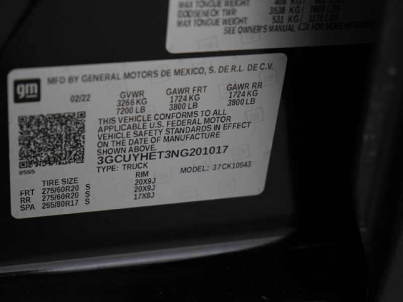 - VIN 3GCUYHET3NG201017