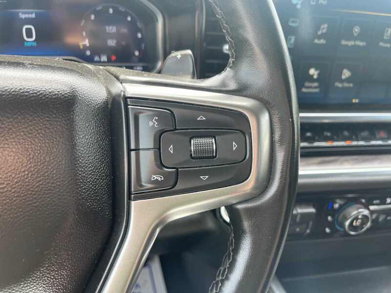 ENGINE, 6.2L ECOTEC3 V8 (420 hp 313 kW 5600 rpm, 460 lb-ft of torque 624 Nm 4100 rpm) featuring Dynamic Fuel Management that enables the engine to operate in 17 different patterns between 2 and 8 cylinders, depending on demand, to optimize power delivery and efficiency Includes (N10) dual exhaust and (NQH) 2-speed transfer case.), Z71 OFF-ROAD PACKAGE includes (Z71) Off-Road suspension, (JHD) Hill Descent Control, (NZZ) skid plates and (K47) heavy-duty air filter Includes Z71 hard badge, (N10) dual exhaust, (QAE) 275/60R20 all-terrain, blackwall tires and (NQH) 2-speed transfer case. AUDIO SYSTEM, CHEVROLET INFOTAINMENT 3 PREMIUM SYSTEM with Google built-in, 13.4 diagonal HD color touchscreen, includes multi-touch display, AM/FM stereo, Bluetooth streaming audio for music and most phones featuring wireless Android Auto and Apple CarPlay capability for compatible phones, advanced voice recognition, in-vehicle apps, personalized profiles for infotainment and vehicle settings (STD), TRANSMISSION, 10-SPEED AUTOMATIC with Electronic Transmission Range Selector, (ETRS), electronically controlled with overdrive, tow/haul mode and steering column paddle shifters. Includes Cruise Grade Braking and Powertrain Grade Braking (STD). Chevrolet LTZ with Black exterior and Jet Black interior features a 8 Cylinder Engine with 420 HP at 5600 RPM*. Serviced here, Originally bought here, Autocheck 1-Owner