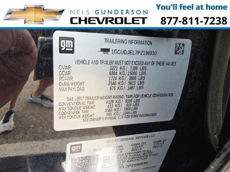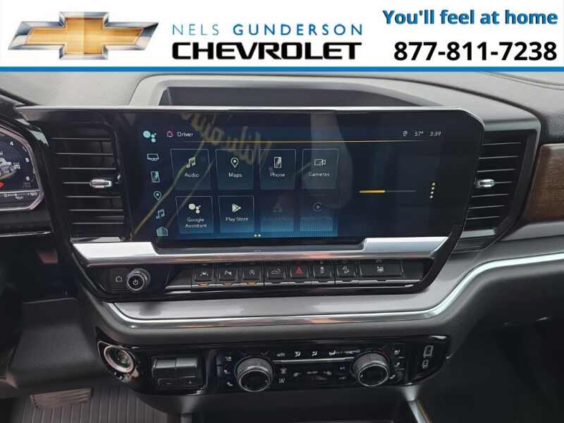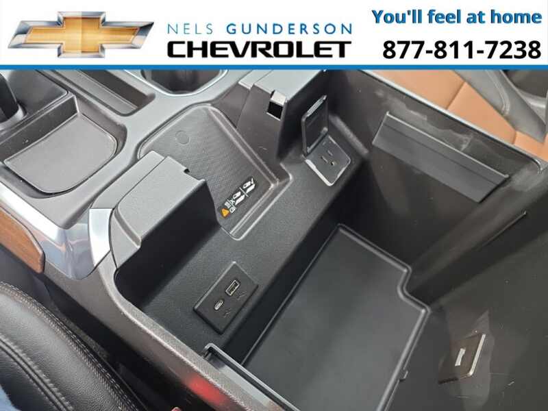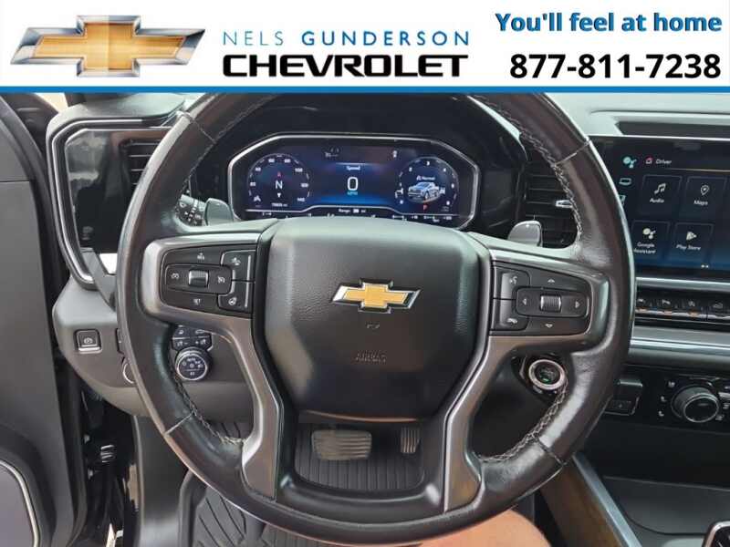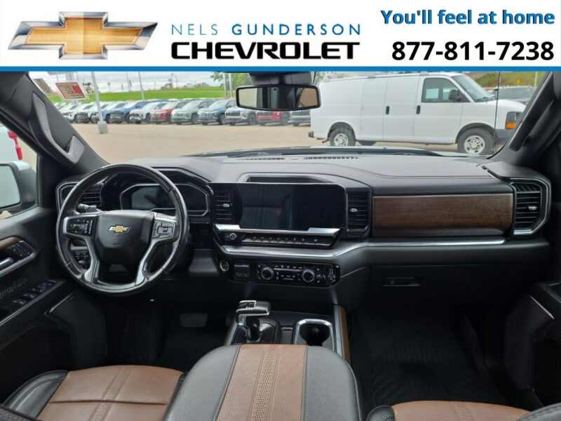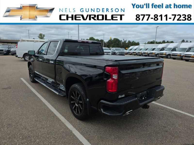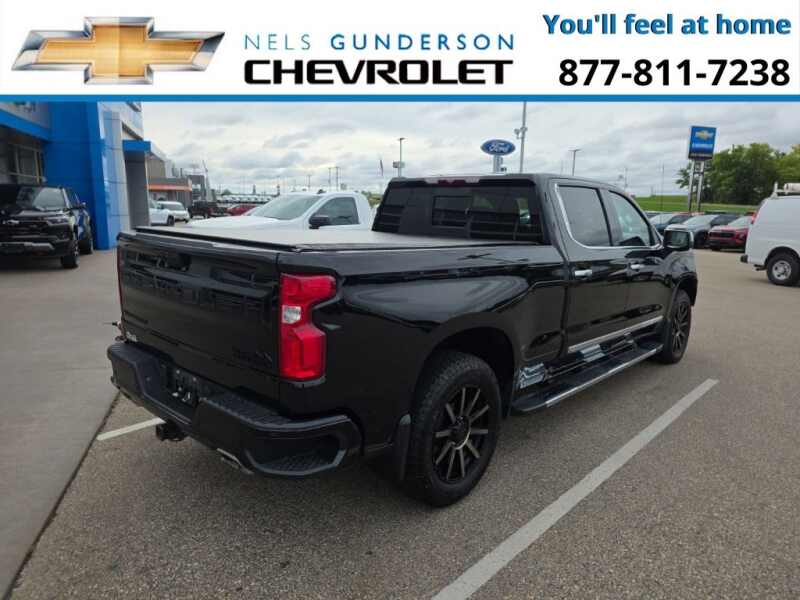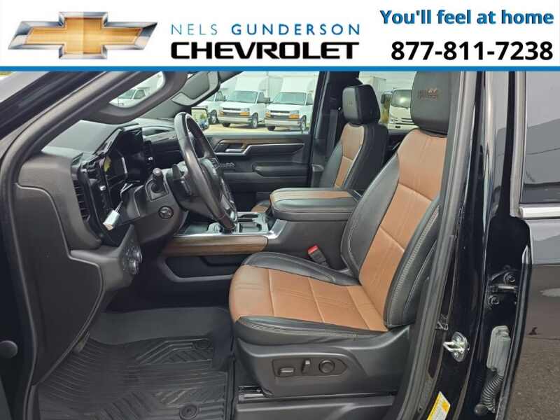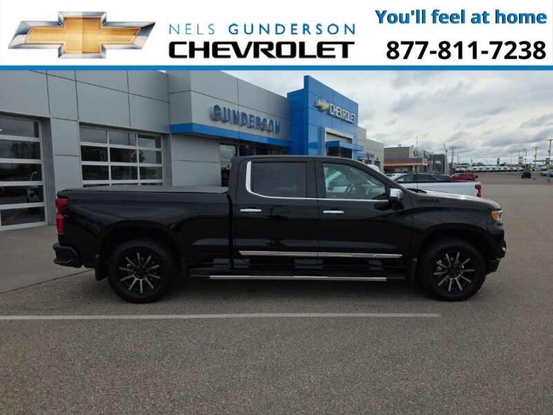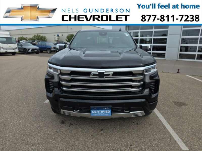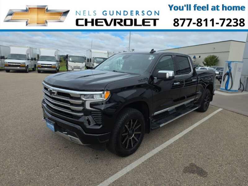 Nels Gunderson Chevrolet is pumped up to offer this reliable 2023 Chevrolet Silverado 1500 High Country in Black, beautifully equipped with Dark Essentials Package (LPO) (Black Name Plates (LPO)), High Capacity Suspension Package, Preferred Equipment Group 3LZ (10-Way Power Driver Seat w/Lumbar, 10-Way Power Passenger Seat Adjuster w/Lumbar, 12.3 Multicolor Reconfigurable Digital Display, 120-Volt Bed Mounted Power Outlet, 120-Volt Instrument Panel Power Outlet, 2 USB Data Ports, 2nd Row Heated Outboard Seats, Auto-Dimming Inside Rear-View Mirror, Auto-Locking Rear Differential, Bed View Camera, Bluetooth For Phone, Body-Color Painted Mirror Caps, Chevrolet Connected Access Capable, Chevytec Spray-On Black Bedliner, Chrome Assist Steps, Chrome Recovery Hooks, Color-Keyed Carpeting Floor Covering, Compass, Deep-Tinted Glass, Driver Memory, Dual Exhaust w/Polished Outlets, Dual Rear USB Ports (Charge Only), Electric Rear-Window Defogger, Electrical Steering Column Lock, Electronic Cruise Control, Floor Mounted Center Console, Front Carpeted Floor Mats, Front LED Fog Lamps, Front Rainsensing Wipers, HD Surround Vision, Heated Driver & Front Outboard Passenger Seats, Heated Steering Wheel, Hitch Guidance w/Hitch View, Integrated Trailer Brake Controller, Keyless Open & Start, LED Cargo Area Lighting, OnStar & Chevrolet Connected Services Capable, Outside Heated Power-Adjustable Mirrors, Perimeter Lighting, Power Front Passenger Windows w/Express Up/Down, Power Front Windows w/Driver Express Up/Down, Power Rear Windows w/Express Down, Power Sliding Rear Window w/Rear Defogger, Power Tailgate, Power Tilt & Telescoping Steering Column, Rear Carpeted Floor Mats, Rear Cross Traffic Alert-Braking, Rear Pedestrian Alert, Rear Wheelhouse Liners, Remote Vehicle Starter System, Safety Alert Seat, SiriusXM w/360L, Standard Tailgate, Steering Wheel Audio Controls, Theft Deterrent System (Unauthorized Entry), Trailer Camera Provisions, Trailer Side Blind Zone Alert, Trailering App, Ultrasonic Front & Rear Park Assist, Universal Home Remote, Ventilated Driver & Front Passenger Seats, Wi-Fi Hot Spot Capable, Wireless Charging, Wireless Phone Projection, and Wrapped Steering Wheel), Trailering Package (Hitch Guidance), Up-Level Rear Seat w/Storage Package, Z71 Off-Road Package (Heavy-Duty Air Filter, Hill Descent Control, and Off-Road Suspension), 10-Speed Automatic, 4WD, Jet Black/Umber Leather, 170 Amp Alternator, 3.23 Rear Axle Ratio, 4-Wheel Disc Brakes, 7 Speakers, ABS brakes, Air Conditioning, All-Weather Floor Liner (LPO) (AAK), Alloy wheels, AM/FM radio SiriusXM with 360L, Apple CarPlay/Android Auto, Auto High-beam Headlights, Auto-dimming door mirrors, Auto-dimming Rear-View mirror, Automatic Emergency Braking, Automatic temperature control, Black Tailgate CHEVROLET Lettering (LPO), Bodyside moldings, Brake assist, Bumpers body-color, Delay-off headlights, Driver door bin, Driver vanity mirror, Dual front impact airbags, Dual front side impact airbags, Electronic Stability Control, Electronic Transmission Range Selector Shifter, Following Distance Indicator, Forward Collision Alert, Front anti-roll bar, Front Black Bowtie Emblem (LPO), Front Bucket Seats, Front Center Armrest, Front dual zone A/C, Front fog lights, Front License Plate Kit, Front Pedestrian Braking, Front reading lights, Front wheel independent suspension, Fully automatic headlights, Garage door transmitter, Genuine wood console insert, Genuine wood dashboard insert, Genuine wood door panel insert, Heated door mirrors, Heated front seats, Heated rear seats, Heated steering wheel, Illuminated entry, IntelliBeam Automatic High Beam On/Off, Lane Keep Assist w/Lane Departure Warning, Low tire pressure warning, Memory seat, Molded Black Splash Guards (LPO), Not Equipped w/Steering Column Lock, Occupant sensing airbag, Outside temperature display, Overhead airbag, Overhead console, Panic alarm, Passenger door bin, Passenger vanity mirror, Perforated Leather Seat Trim, Powe