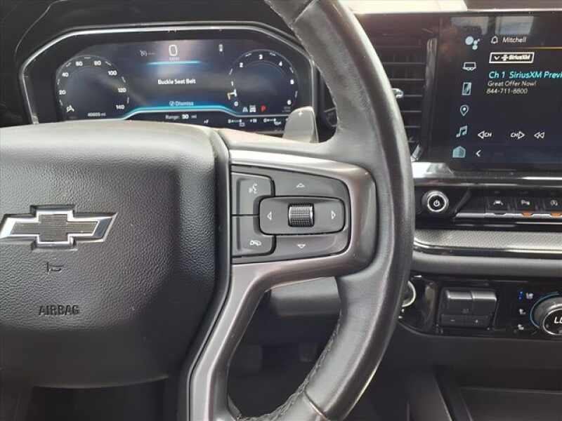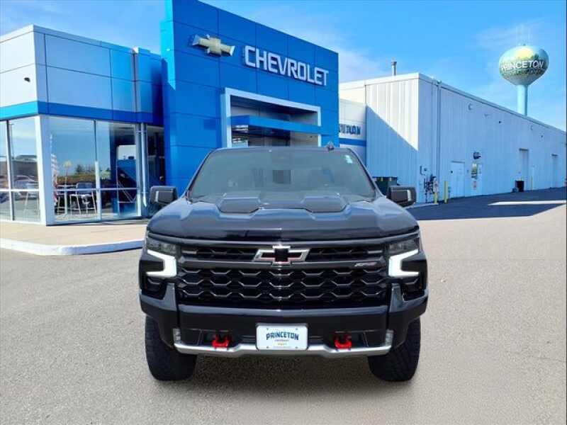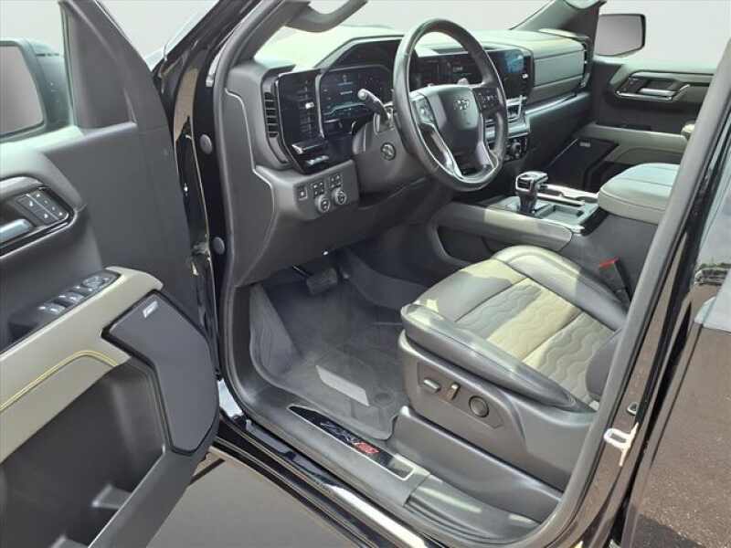Black 2023 Chevrolet Silverado 1500 ZR2 4WD 10-Speed Automatic EcoTec3 6.2L V8 10-Speed Automatic, 4WD, Jet Black/Graystone Leather, 10-Way Power Driver Seat w/Lumbar, 10-Way Power Passenger Seat Adjuster w/Lumbar, 12.3 Multicolor Reconfigurable Digital Display, 120-Volt Bed Mounted Power Outlet, 120-Volt Instrument Panel Power Outlet, 15 Diagonal Multicolor Head-Up Display, 170 Amp Alternator, 2 USB Data Ports, 2nd Row Heated Outboard Seats, Adaptive Cruise Control, All-Weather Floor Liner (LPO), Auto-Dimming Inside Rear-View Mirror, Auto-Locking Rear Differential, Bed View Camera, Bluetooth For Phone, Chevrolet Connected Access Capable, Chevytec Spray-On Black Bedliner, Color-Keyed Carpeting Floor Covering, Compass, Deep-Tinted Glass, Driver door bin, Driver Memory, Driver vanity mirror, Dual Exhaust, Dual Rear USB Ports (Charge Only), Electric Rear-Window Defogger, Electrical Steering Column Lock, Electronic Cruise Control, EZ Lift Power Lock & Release Tailgate, Floor Mounted Center Console, Following Distance Indicator, Forward Collision Alert, Front Bucket Seats, Front Center Armrest, Front LED Fog Lamps, Front Pedestrian Braking, Front Rainsensing Wipers, Front reading lights, Garage door transmitter, HD Surround Vision, Heated Driver & Front Outboard Passenger Seats, Heated front seats, Heated rear seats, Heated Steering Wheel, Heated steering wheel, Heavy-Duty Air Filter, High Gloss Black Mirror Caps, Hill Descent Control, Hitch Guidance, Hitch Guidance w/Hitch View, Illuminated entry, Integrated Trailer Brake Controller, Keyless Open & Start, Lane Keep Assist w/Lane Departure Warning, LED Cargo Area Lighting, Manual Tilt/Telescoping Steering Column, OnStar & Chevrolet Connected Services Capable, Outside Heated Power-Adjustable Mirrors, Outside temperature display, Overhead console, Panic alarm, Passenger door bin, Passenger vanity mirror, Perforated Leather Seat Trim, Performance Red Recovery Hooks, Perimeter Lighting, Power Front Passenger Windows w/Express Up/Down, Power Front Windows w/Driver Express Up/Down, Power passenger seat, Power Rear Windows w/Express Down, Power Sliding Rear Window w/Rear Defogger, Power Tilt & Telescoping Steering Column, Preferred Equipment Group 3LT, Rear Camera Mirror, Rear Cross Traffic Alert-Braking, Rear Park Assist, Rear Pedestrian Alert, Rear reading lights, Rear seat center armrest, Rear Wheelhouse Liners, Remote Vehicle Starter System, Safety Alert Seat, Security system, SiriusXM w/360L, Speed control, Split folding rear seat, Standard Tailgate, Steering Wheel Audio Controls, Tachometer, Technology Package, Telescoping steering wheel, Theft Deterrent System (Unauthorized Entry), Tilt steering wheel, Trailer Camera Provisions, Trailer Side Blind Zone Alert, Trailering App, Trailering Package, Trip computer, Universal Home Remote, Up-Level Rear Seat w/Storage Package, Ventilated Driver & Front Passenger Seats, Ventilated front seats, Voltmeter, Wi-Fi Hot Spot Capable, Wireless Charging, Wireless Phone Projection, Wrapped Steering Wheel, ZR2 Suspension Package.