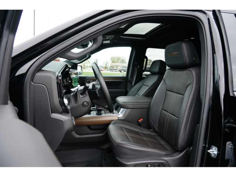 - Preferred Equipment Group 3LZ Trailer Side Blind Zone Alert Chrome Assist Steps Driver Memory Perforated Leather Seat Trim SiriusXM with 360L Power Sliding Rear Window with Rear Defogger Safety Alert Seat Ultrasonic Front and Rear Park Assist Trailer Camera Provisions Electric Rear-Window Defogger Theft Deterrent System (unauthorized Entry) 20 X 9 Painted Aluminum Wheels Front Rainsensing Wipers Compass Heated Steering Wheel 120-Volt Instrument Panel Power Outlet Heated Driver and Front Outboard Passenger Seats Wireless Charging Front Bucket Seats Color-Keyed Carpeting Floor Covering OnStar and Chevrolet Connected Services Capable 2nd Row Heated Outboard Seats Power Front Passenger Windows with Express Up/down Front Carpeted Floor Mats Rear Carpeted Floor Mats 12.3 Multicolor Reconfigurable Digital Display Body-Color Painted Mirror Caps Power Rear Windows with Express Down Integrated Trailer Brake Controller HD Surround Vision Ventilated Driver and Front Passenger Seats Power Tilt and Telescoping Steering Column 275/60R20SL AT BW Tires Keyless Open and Start Perimeter Lighting Auto-Dimming Inside Rearview Mirror LED Cargo Area Lighting Bluetooth For Phone Remote Vehicle Starter System Trailering App 5.3L EcoTec3 V8 Engine Floor Mounted Center Console Bed View Camera Rear Cross Traffic Alert-Braking Electrical Steering Column Lock Trailering Package Wireless Phone Projection Up-Level Rear Seat with Storage Package Standard Tailgate 2 USB Data Ports Front LED Fog Lamps Chrome Recovery Hooks Steering Wheel Audio Controls Dual Rear USB Ports (charge Only) Universal Home Remote 2-Speed Transfer Case Deep-Tinted Glass 10-Way Power Driver Seat with Lumbar Chevytec Spray-On Black Bedliner Dual Exhaust with Polished Outlets Electronic Cruise Control Chevy Safety Assist Hitch Guidance with Hitch View Power Front Windows with Driver Express Up/down Wrapped Steering Wheel Power Tailgate Rear Pedestrian Alert 10-Way Power Passenger Seat Adjuster with Lumbar Outside Heated Power-Adjustable Mirrors Rear Wheelhouse Liners Auto-Locking Rear Differential