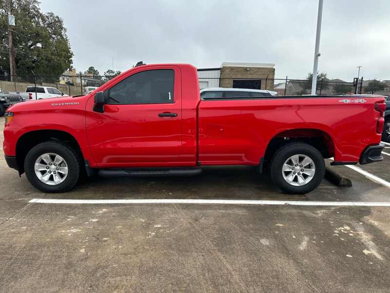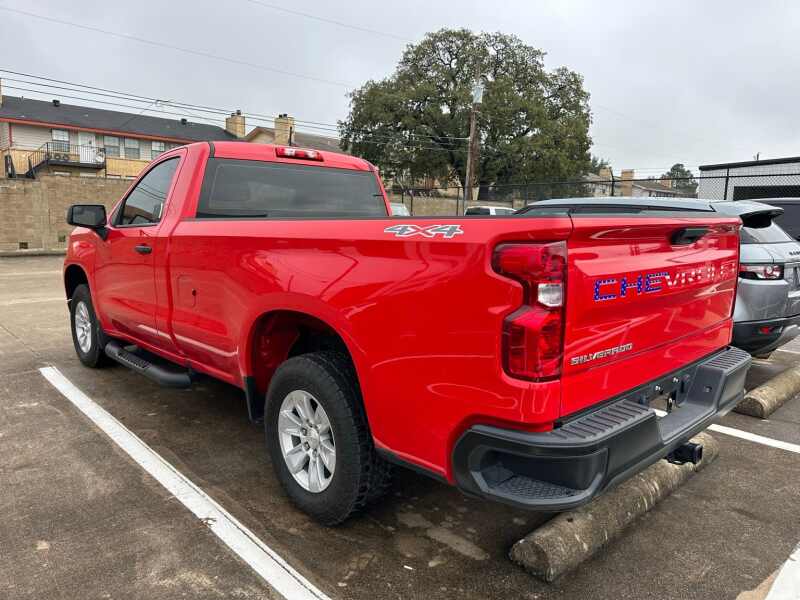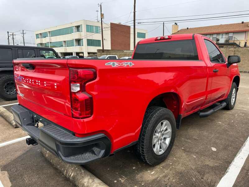 2024 Chevrolet Silverado 1500 WT 4x4 4x4 Red Hot 2D Standard Cab 4WD 10-Speed Automatic EcoTec3 5.3L V8 10-Speed Automatic, 4WD, Jet Black Vinyl, 170 Amp Alternator, 2 Speakers, 2-Speaker Audio System, 220 Amp Alternator, 3.5 Monochromatic Display Driver Info Center, 4-Wheel Disc Brakes, 4 Black Round Assist Steps (LPO), 40/20/40 Front Split Bench Seat, ABS brakes, Air Conditioning, Auto High-beam Headlights, Auto-Locking Rear Differential, Automatic Emergency Braking, Auxiliary External Transmission Oil Cooler, Black (Semi-Gloss) Front Bumper, Black (Semi-Gloss) Rear Bumper, Bluetooth For Phone, Brake assist, Chevrolet Connected Access Capable, Compass, Delay-off headlights, Driver door bin, Dual front impact airbags, Dual front side impact airbags, Electrical Steering Column Lock, Electronic Stability Control, External Engine Oil Cooler, Following Distance Indicator, Forward Collision Alert, Front anti-roll bar, Front Center Armrest w/Storage, Front Frame-Mounted Black Recovery Hooks, Front License Plate Kit, Front Pedestrian Braking, Front reading lights, Front wheel independent suspension, Fully automatic headlights, HD Rear Vision Camera, Heated door mirrors, Heated Power-Adjustable Outside Mirrors, Hitch Guidance, Illuminated entry, Inside Rear-View Mirror w/Tilt, Integrated Trailer Brake Controller, IntelliBeam Automatic High Beam On/Off, Lane Keep Assist w/Lane Departure Warning, Locking Tailgate, Low tire pressure warning, Manual Tailgate Function w/No EZ Lift, Manual Tilt Wheel Steering Column, Occupant sensing airbag, OnStar & Chevrolet Connected Services Capable, Outside temperature display, Overhead airbag, Overhead console, Panic alarm, Passenger door bin, Passenger vanity mirror, Power door mirrors, Power Front Windows w/Driver Express Up/Down, Power Front Windows w/Passenger Express Down, Power steering, Power windows, Preferred Equipment Group 1WT, Premium audio system Chevrolet Infotainment 3, Radio data system, Radio Chevrolet Infotainment 3 System, Rear reading lights, Rear step bumper, Remote Keyless Entry, Remote keyless entry, Rubberized-Vinyl Floor Covering, SiriusXM Delete, Solar Absorbing Tinted Glass, Speed-sensing steering, Standard Suspension Package, Standard Tailgate, Tachometer, Tilt steering wheel, Traction control, Trailering Package, Trip computer, Variably intermittent wipers, Vinyl Seat Trim, Voltmeter, Wheels 17 x 8 Bright Silver Painted Aluminum, Wi-Fi Hot Spot Capable.