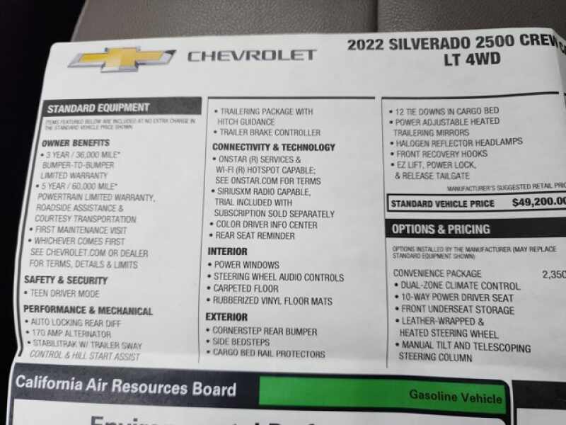 ONE OWNER! CLEAN AUTOCHECK! Very very clean inside and out! This is one of the sharpest 2022 Chevrolet Silverado 2500 crewcab longbox 3/4 ton gas trucks on our lot! Make your move before this super clean 4wd is gone!
