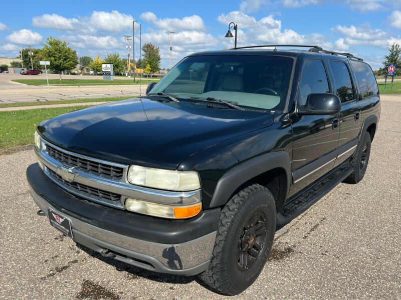 Recent Arrival! **NON-SMOKER**, **1-OWNER**, **ACCIDENT FREE**, **HEATED SEATS**, **4WD**, **RUST FREE**, **LEATHER**, **LOW MILES**.CARFAX One-Owner. Clean CARFAX.Onyx Black 2002 Chevrolet Suburban 1500 LT 4WD 4-Speed Automatic with Overdrive Vortec 5.3L V8 SFIWe are open for all your Auto Body, Service and Sales needs! Complete indoor in person and online buying experience available!We do prefer to work by appointment to ensure vehicle is onsite and in our indoor showroom for you, call 763-999-0742 to confirm availability before coming out to our indoor showroom! Visit SS Motors online at ssmotorsmn.com to see more pictures of this vehicle or call us at 763-999-0742 today to schedule your test drive.