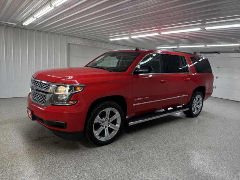RARE COLOR! BRAND NEW TIRES!2017 Chevrolet Suburban LT 4WD 6-Speed Automatic Electronic with OverdriveMP3, Bluetooth, Clean CarFax, Leather, Heated Seats, Heated and Cooled Seats, Sunroof/Moonroof, Navigation/GPS/NAVI, DVD/Rear Entertainment/RES, 2nd Row Captain Chairs/Buckets, Power Lift Gate, Backup Camera, Remote Start, Cruise Control, Steering Wheel Controls, Keyless Entry, USB/AUX ports, MP3 player, 7 Passenger, Parking Sensors, Parking Assist, Tow Package.Please call or visit our store 319 4th Avenue South. Pease, MN 56363.Stop by for a test drive! Available only at Hi-Way Auto Sales, where the customer is #1. Family owned and operated since 1953! We provide a free carfax report for this vehicle available on our website for your convenience and safety!