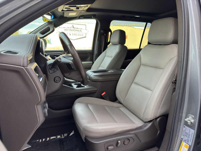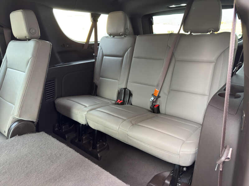 - Preferred Equipment Group 2Z7 Bright Front and Rear Door Sill Plates Stop/start System Disable Button Leather-Appointed Seating Remote Start Hill Descent Control Front and Rear Park Assist 20 X 9 Machined Aluminum Wheels Floor Console with Storage Area Black Tubular Assist Steps LED Daytime Running Lamps Driver and Front Outboard Passenger Airbags 10-Way Power Driver and Passenger Seat Adjusters Memory Settings For Driver Heated Driver and Front Passenger Seats Wireless Charging Front Bucket Seats Universal Home Remote Color-Keyed Carpeting Floor Covering Front Skid Plate Front High-Approach Angle Fascia Hands-Free Rear Power Programmable Liftgate Chevrolet Infotainment 3 Premium System Radio Bose 9-Speaker Stereo Audio System Feature 2-Speed Active Electronic Autotrac Transfer Case 1st and 2nd Row Color-Keyed Carpeted Floor Mats Enhanced Driver Information Center Red Recovery Hooks SiriusXM Radio with 360L Leather-Wrapped Steering Wheel 275/60R20SL AT BW Tires Infotainment Display Auto-Dimming Inside Rearview Mirror Automatic Stop/start