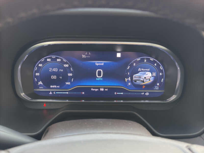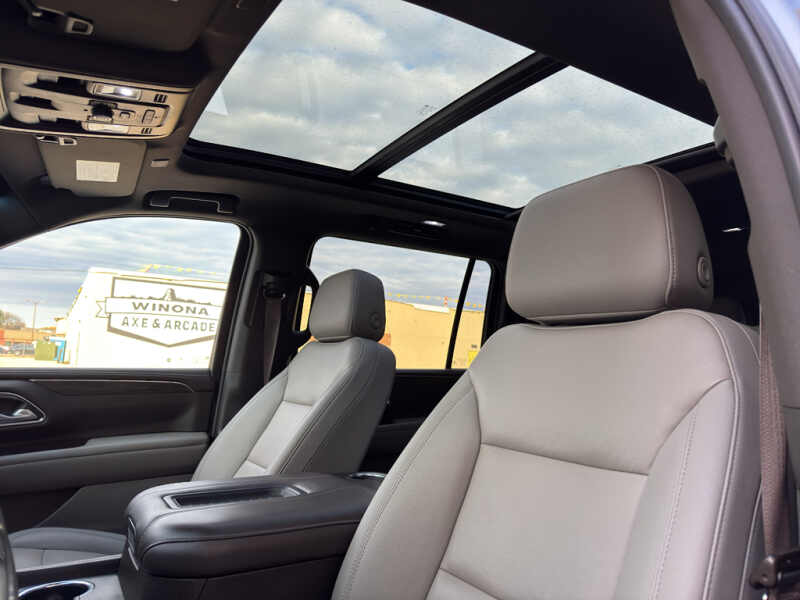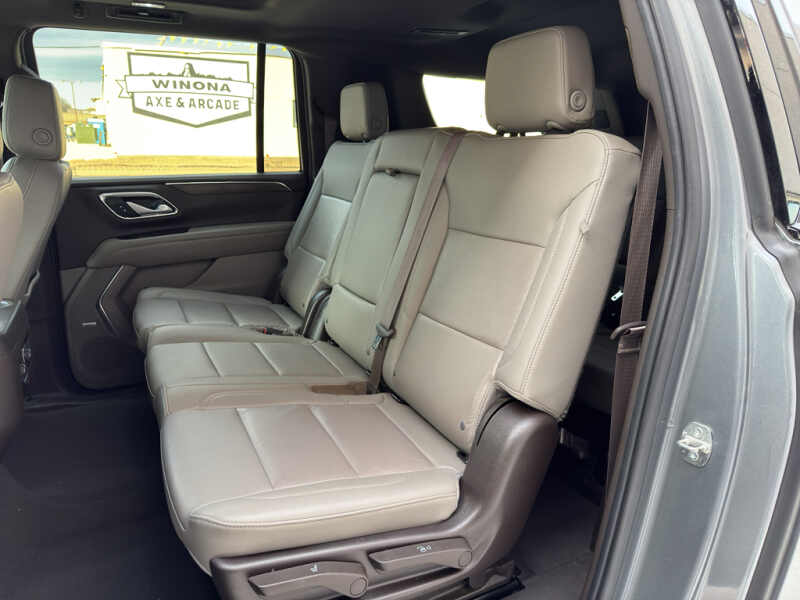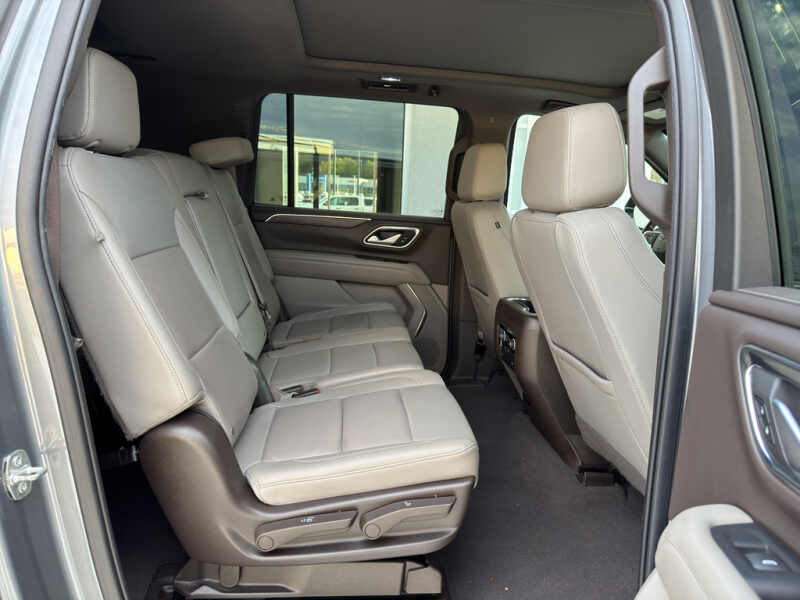 Driver Alert Package Rear Cross Traffic Alert Lane Change Alert with Side Blind Zone Alert. Luxury Package HD Surround Vision Heated 2nd Row Outboard Seats 2nd Row Power Release 60/40 Split-Folding Bench Seat Memory Settings Power Tilt and Telescopic Steering Column Rear Pedestrian Alert Heated Steering Wheel 3rd Row 60/40 Power-Folding Split-Bench Outside Heated Power-Adjustable Mirrors. Preferred Equipment Group 2Z7 Bright Front and Rear Door Sill Plates Stop/start System Disable Button Leather-Appointed Seating Remote Start Hill Descent Control Front and Rear Park Assist 20 X 9 Machined Aluminum Wheels Floor Console with Storage Area Black Tubular Assist Steps LED Daytime Running Lamps Driver and Front Outboard Passenger Airbags 10-Way Power Driver and Passenger Seat Adjusters Memory Settings For Driver Heated Driver and Front Passenger Seats Wireless Charging Front Bucket Seats Universal Home Remote Color-Keyed Carpeting Floor Covering Front Skid Plate Front High-Approach Angle Fascia Hands-Free Rear Power Programmable Liftgate Chevrolet Infotainment 3 Premium System Radio Bose 9-Speaker Stereo Audio System Feature 2-Speed Active Electronic Autotrac Transfer Case 1st and 2nd Row Color-Keyed Carpeted Floor Mats Enhanced Driver Information Center Red Recovery Hooks SiriusXM Radio with 360L Leather-Wrapped Steering Wheel 275/60R20SL AT BW Tires Infotainment Display Auto-Dimming Inside Rearview Mirror Automatic Stop/start. Dual-Pane Power Panoramic Sunroof. **Equipment listed is based on original vehicle build and subject to change. Please confirm the accuracy of the included equipment by calling the dealer prior to purchase.**