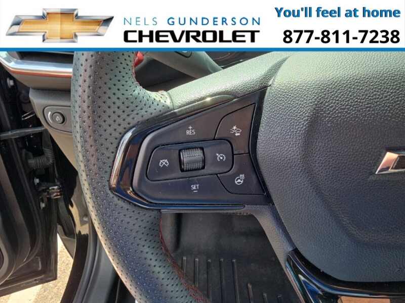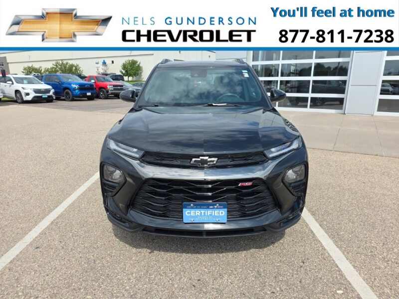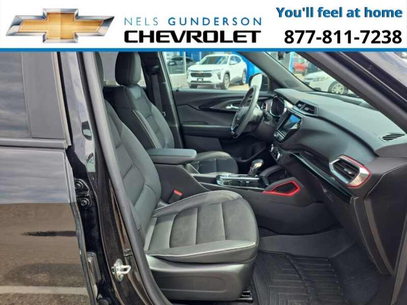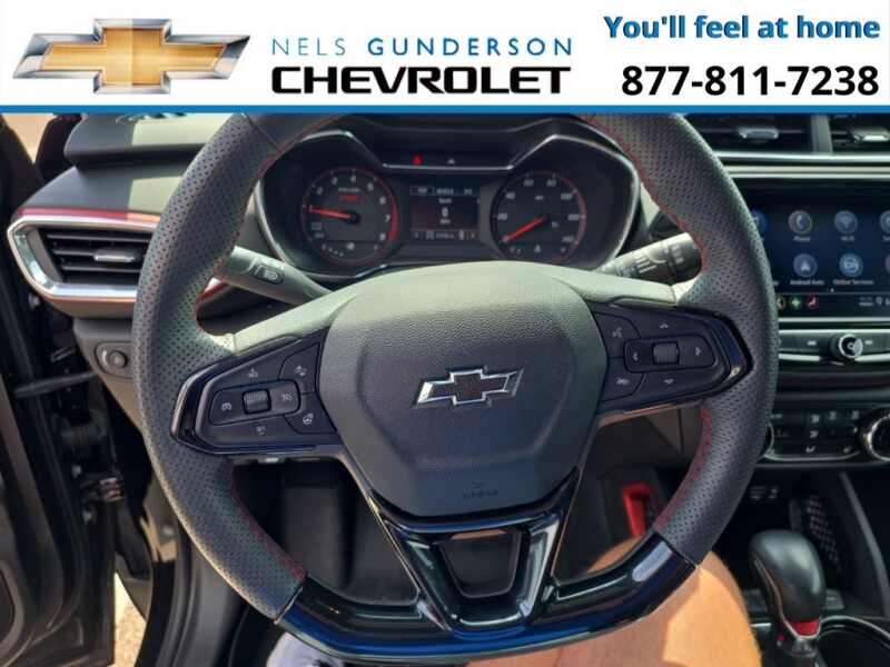 Nels Gunderson Chevrolet is excited to offer this beautiful 2023 Chevrolet TrailBlazer RS in Mosaic Black Metallic, beautifully equipped with Confidence II Package (Rear Park Assist), Convenience Package (1 Type-A & 1 Type-C USB Charging-Only Ports, 120-Volt Power Outlet, 8 Diagonal Color Touchscreen Display, Cabin Humidity Sensor, Driver & Front Passenger Illuminated Vanity Mirrors, Inside Rear-View Auto-Dimming Mirror, and Single-Zone Auto Climate Control Air Conditioning), Preferred Equipment Group 1RS (Heated Steering Wheel), 2-Way Adjustable Front Head Restraints, 2-Way Power Driver Lumbar Seat Adjuster, 3.17 Axle Ratio, 4-Way Manual Front Passenger Seat Adjuster, 4-Wheel Disc Brakes, 6 Speakers, 6-Speaker Audio System Feature w/Amplifier, 7 Diagonal Color Touchscreen, 8-Way Power Driver Seat Adjuster, ABS brakes, Air Conditioning, Alloy wheels, AM/FM radio SiriusXM, Auto High-beam Headlights, Brake assist, Bumpers body-color, Cloth w/Leatherette Seat Trim, Compass, Delay-off headlights, Driver door bin, Driver vanity mirror, Dual front impact airbags, Dual front side impact airbags, Electronic Stability Control, Emergency communication system OnStar and Chevrolet connected services capable, Exterior Parking Camera Rear, Flat-Folding Front Passenger Seatback, Front anti-roll bar, Front Bucket Seats, Front Center Armrest, Front fog lights, Front License Plate Bracket, Front reading lights, Front wheel independent suspension, Fully automatic headlights, Heated door mirrors, Heated Driver & Front Passenger Seats, Heated front seats, Heated steering wheel, Illuminated entry, Knee airbag, Leather Shift Knob, Leather steering wheel, Low tire pressure warning, Mosaic Black Metallic Roof, Not Equipped w/Driver & Fr Passenger Heated Seats, Not Equipped w/Heated Steering Wheel, Not Equipped w/Rear Park Assist, Occupant sensing airbag, Overhead airbag, Overhead console, Panic alarm, Passenger door bin, Passenger vanity mirror, Power door mirrors, Power driver seat, Power steering, Power windows, Radio data system, Radio Chevrolet Infotainment 3 System, Rear seat center armrest, Rear side impact airbag, Rear window defroster, Rear window wiper, Remote keyless entry, Ride & Handling Suspension, Security system, SiriusXM Radio, Speed control, Split folding rear seat, Spoiler, Steering wheel mounted audio controls, Tachometer, Telescoping steering wheel, Tilt steering wheel, Traction control, Trip computer, Variably intermittent wipers, Wheels 18 High Gloss Black Machined Aluminum, and Wireless Apple CarPlay/Android Auto. Odometer is 5921 miles below market average! 26/30 City/Highway MPG