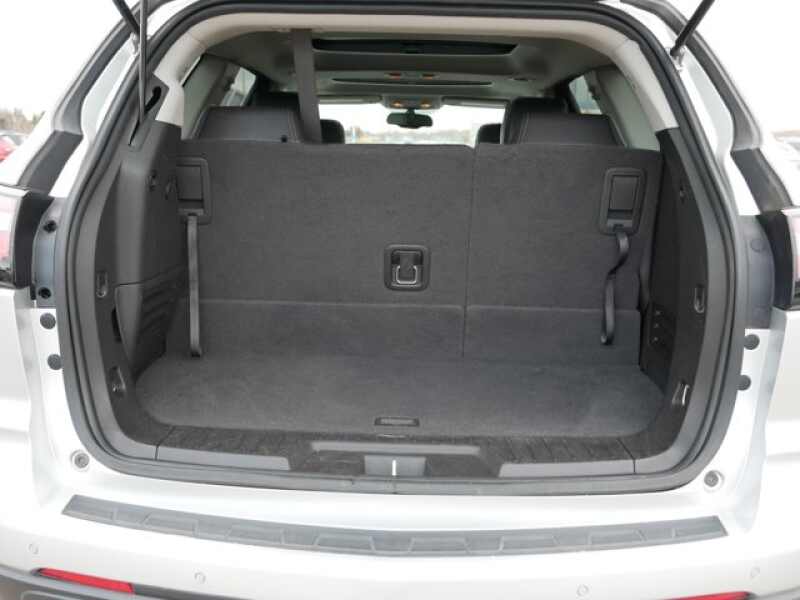 LEATHER AND DRIVER CONFIDENCE PACKAGE includes (**2) leather-appointed seating on first and second rows, (AG3) 8-way power driver seat with power recline, lumbar control and memory, (AH8) 8-way power passenger seat adjuster, (A45) 2-position memory for drivers seat and outside mirrors, (UFT) Side Blind Zone Alert and Rear Cross Traffic Alert, (AXE) power windows with driver Express-Up and - Down and passenger Express-Down and (DNP) outside heated power-adjustable, power-folding, driver-side auto-dimming body-color mirrors with integrated turn signal indicators and driver-side memory, SUNROOF, DUAL SKYSCAPE 2-PANEL POWER with tilt-sliding front and fixed rear with sunscreen, COLOR TOUCH NAVIGATION SYSTEM (Includes (UI8) Chevrolet MyLink radio with Navigation without (U42) rear seat entertainment system.), LPO, ROOF RACK LONGITUDINAL C-CHANNELS AND CROSS RAILS, ENGINE, 3.6L SIDI V6 (281 hp 210 kW 6300 rpm, 266 lb-ft of torque 3400 rpm 359.1 N-m) (STD), TRANSMISSION, 6-SPEED AUTOMATIC (STD), CHEVROLET MYLINK RADIO WITH NAVIGATION 6.5 diagonal color touch-screen display, AM/FM/SiriusXM radio with CD player, includes Bluetooth streaming audio for music and select phones Hands-Free smartphone integration with Pandora and Stitcher voice-activated technology for radio and phone.