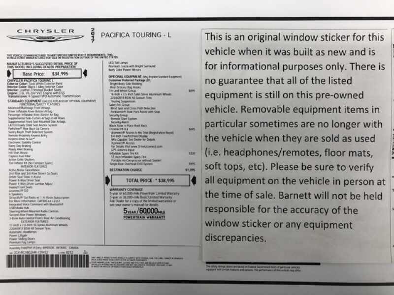 - QUICK ORDER PACKAGE 27L TOURING L -inc Engine 3.6L V6 24V VVT UPG I w/ESS Transmission 9-Speed 948TE FWD Automatic Rear Seatback Grocery Bag Hooks Bright Bodyside Molding