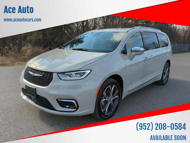 2021 Chrysler Pacifica Pinnacle AWD 4dr Mini Van Call or Text Sales at (952) 208-0584 Many more cars on www.AceAutoCars.com Price $27,994 - 360 WALK AROUND AND PANORAMIC INTERIOR - copy and paste the link below into your browser https//spins.impel.io/aceautocars/2c4rc3pg2mr604101 Pacifica is in excellent condition with 69K miles. 3.6L V6 engine with Automatic 9-Speed transmission. Clean inside and outside. Upgraded with the optional 27S Customer Preferred Package. See original window sticker with list of the options. Prior salvage, so, the price has been adjusted. Left fender, hood and front bumper cover have been replaced. Original pictures prior fix are available. WARRANTY 1 year or 12,000 mile warranty, whichever comes first, so you can be confident in your purchase even after you leave the lot. Vehicles are sold on a first-come, first-served basis. To secure a vehicle, a non-refundable 10% deposit is necessary.