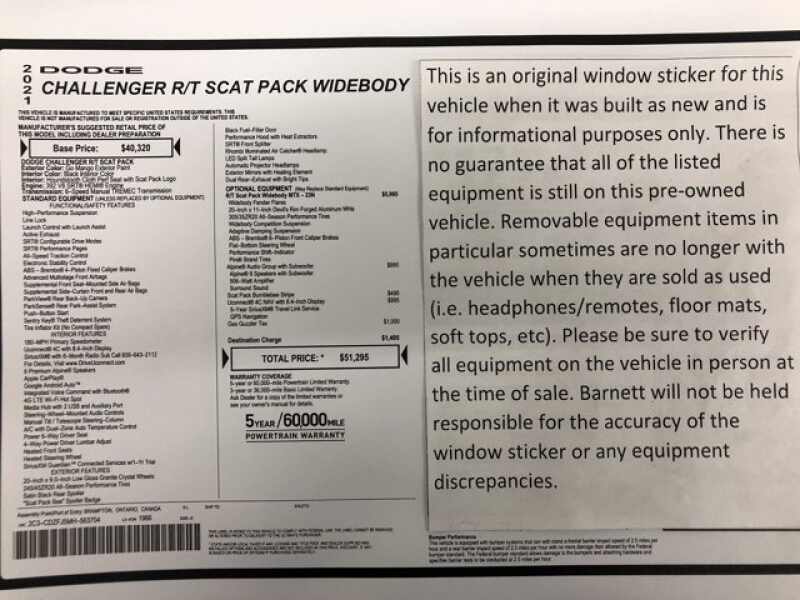 - QUICK ORDER PACKAGE 23N R/T SCAT PACK WIDEBODY -inc Engine 6.4L V8 SRT HEMI Transmission 6-Speed Manual Tremec Flat-Bottom Steering Wheel Performance Shift Indicator Brembo 6-Pot Fixed Front Caliper Brakes Pirelli Brand Tires Widebody Competition Suspension Widebody Fender Flares