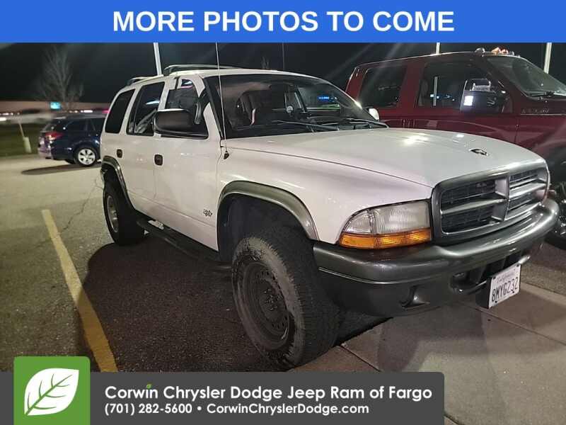 WELCOME TO DECEMBER AT CORWIN CHRYSLER DODGE JEEP RAM OF FARGO!! WE HAVE GREAT SAVINGS ON ALL OF OUR PRE-OWNED VEHICLES AVAILABLE!! WE HAVE ONE OF THE LARGEST SELECTIONS OF INVENTORIES IN OUR AREA AT ONE SINGLE LOCATION!! Bright White Clearcoat 2002 Dodge Durango Sport 4D Sport Utility 4WD Next Generation Magnum 4.7L V8 Clean CARFAX.