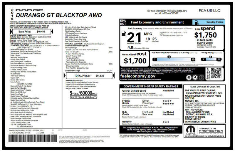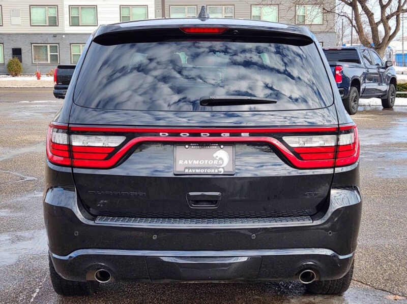 This vehicle comes with a clean title, and only one previous owner. Available at our Crystal location, Make a bold statement with this aggressive 2018 Dodge Durango GT AWD, featuring the highly sought-after Blacktop Package for a sinister, custom look. Under the hood, the reliable 3.6L V6 engine strikes the perfect balance between muscle and efficiency, delivering a respectable 25 HWY MPG without sacrificing power. Equipped with an advanced All-Wheel Drive system, this Durango is built to handle toughest winters and muddy trails with absolute confidence. The Blacktop Package elevates its curb appeal with 20-inch Gloss Black wheels, blacked-out badges, and dark exterior accents that demand attention at every corner. Inside, you'll find a premium three-row cabin designed for both comfort and utility, ensuring your family travels in style and luxury. This is the ultimate SUV for drivers who refuse to compromise on performance or looks, come see why the Durango GT is the king of the road! Come on down to RavMotors of Crystal to test-drive our cars! We'll be happy to help you find the right car at the right price. Call for vehicle availability at 763-401-4242 or email us at ravmotorsofcrystalgmail.com. Make sure to check out our inventory at www.ravmotors.com We stand behind all of our cars. We are open from 1000 AM - 700 PM on Monday-Thursday and 1000 AM - 600 PM on Friday-Saturday.