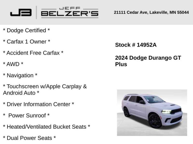 * Dodge Certified * Carfax 1 Owner * Accident Free Carfax * AWD * 10.1-Inch Navigation Touchscreen w/Apple Carplay & Android Auto * Driver Information Center * Power Sunroof * Heated/Ventilated Bucket Seats * Dual Power Seats * Heated Steering Wheel * Power Tilt & Telescopic Wheel * Heated Rear Outboard Seats * 3rd Row Seat * Blind Spot * Rear Cross Path Detection * Full-Speed Forward Collision Warning * Bluetooth Hands Free * Cruise Control * Adaptive Cruise w/Stop * Remote Proximity Keyless Entry * Remote Start * 20 Inch Alloy Wheels * Push Button Start * Power Liftgate * Tri-Zone Automatic Climate Control * Rear Camera * Satellite & HD Radio *