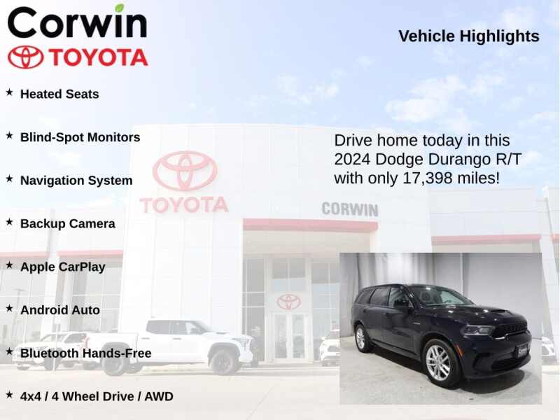 This Dodge Durango is well equipped and includes the following features and benefits, Heated Seats, Blind-Spot Monitors, Navigation System, Backup Camera, Apple CarPlay, Android Auto, Bluetooth Hands-Free, 4x4 / 4 Wheel Drive / AWD. Odometer is 1243 miles below market average!
