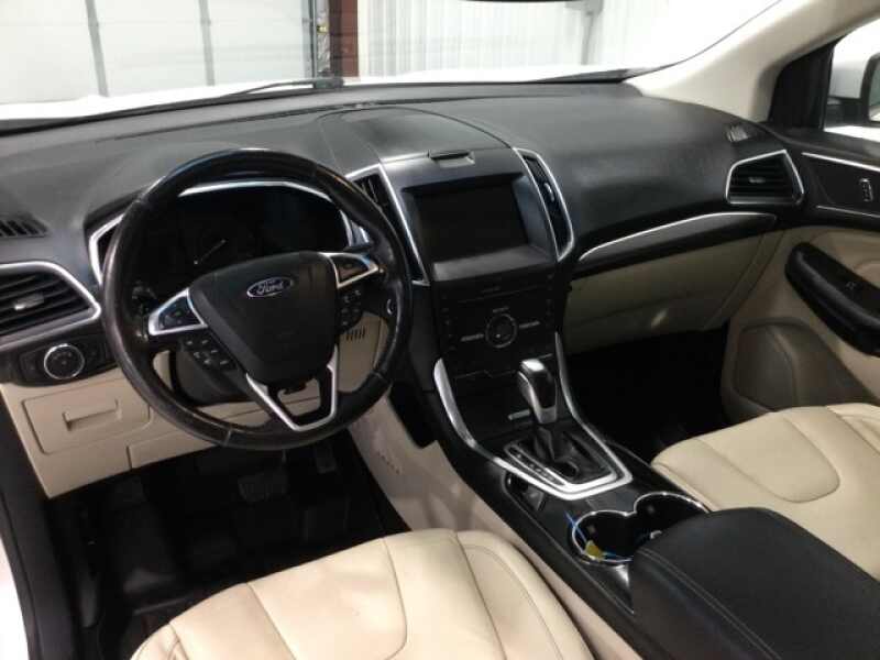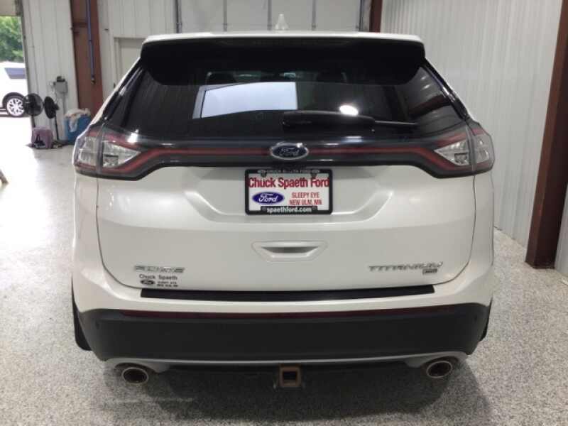 One Owner, Local Trade, Titanium Package, All Wheel Drive, Navigation System, Backup Camera, Remote Start, Leather Seats, Heat Package, Multi-Zone Climate Control, Tow Package, Bluetooth, AWD, Auto-Dimming Driver's Sideview Mirror, BLIS Blind Spot Information System, Cargo Accessory Package, Cargo Mat, Class II Trailer Tow Package w/Trailer Sway Control, Equipment Group 301A, Heated Rear-Seats, Heated Steering Wheel, Integrated SiriusXM Traffic & Travel Link, Interior Cargo Cover, Panoramic Vista Roof, Perforated Leather Trimmed Heated/Cooled Buckets, Power Converter 110V Outlet, Radio AM/FM Stereo w/Single CD/Navigation, Rear Bumper Protector, Remote Start System, SiriusXM Radio, Technology Package. 2015 Ford Edge Titanium AWD White Platinum Metallic Tri-Coat