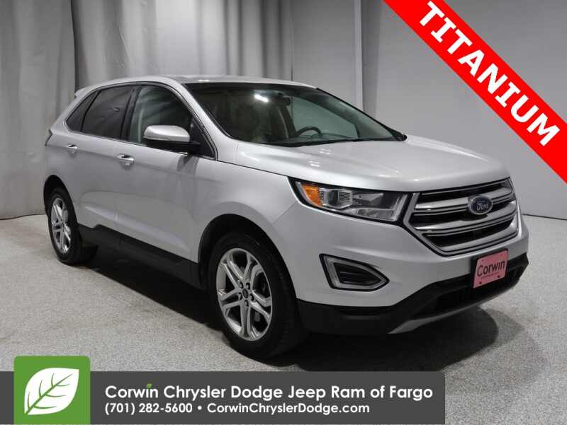 SCARY OCTOBER DEALS GOING ON AT CORWIN CHRYSLER DODGE JEEP RAM OF FARGO!!OFFERING GREAT SAVINGS ON OUR PRE-OWNED VEHICLES AVAILABLE!!WE HAVE ONE OF THE LARGEST SELECTIONS OF INVENTORIES IN OUR AREA AT ONE LOCATION!! Recent Arrival! New Price! Priced below KBB Fair Purchase Price! Ingot Silver 2016 Ford Edge Titanium 4D Sport Utility AWD EcoBoost 2.0L I4 GTDi DOHC Turbocharged VCT