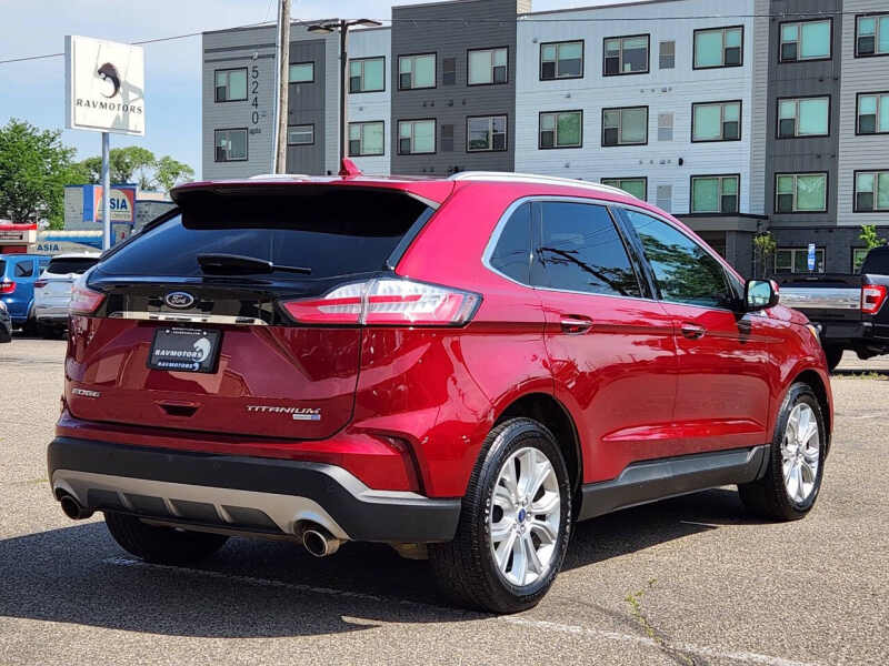 Available at our Crystal location, this stunning 2019 Ford Edge Titanium AWD is the perfect blend of sophistication, capability, and efficiency. Powered by a responsive 2.0L I4 turbocharged engine, it delivers ample power for daily commutes and highway cruising while still achieving an impressive 28 MPG on the highway. The intelligent All-Wheel Drive system provides confident handling and traction in various road conditions, making it an ideal choice for any weather. The Titanium trim level elevates the Edge with a host of premium features, ensuring a comfortable and connected driving experience. Enjoy luxurious leather-trimmed seating, and a premium audio system. Advanced technology abounds, including a large touchscreen infotainment system with Apple CarPlay and Android Auto, a rearview camera, and a suite of driver-assistance features for added peace of mind. With its sleek exterior design, spacious interior, and versatile cargo capacity, this 2019 Ford Edge Titanium AWD is ready for all your adventures, from urban explorations to weekend getaways. Don't miss the opportunity to own this well-maintained and feature-rich crossover. Come on down to RavMotors of Crystal to test-drive our cars! We'll be happy to help you find the right car at the right price. Call for vehicle availability at 763-401-4242 or email us at ravmotorsofcrystalgmail.com. Make sure to check out our inventory at www.ravmotors.com We stand behind all of our cars. We are open from 1000 AM - 700 PM on Monday-Thursday and 1000 AM - 600 PM on Friday-Saturday.