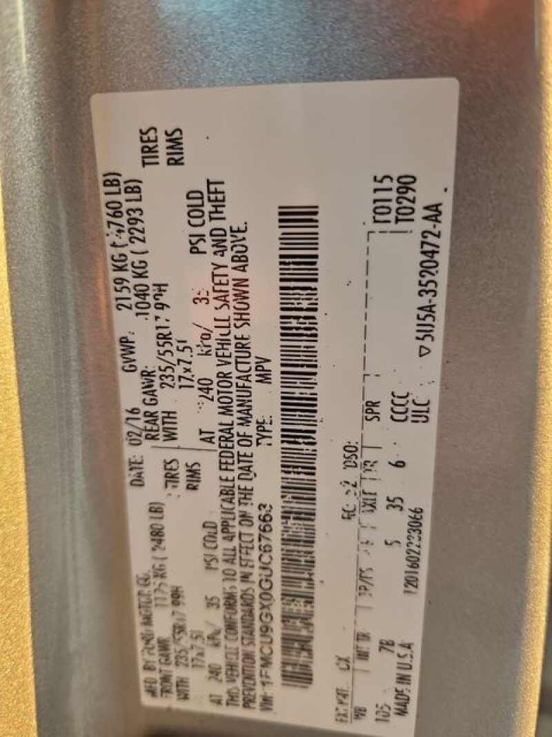 - VIN 1FMCU9GX0GUC67663