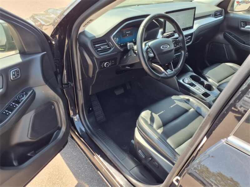 Black 2023 Ford Escape Platinum AWD 8-Speed Automatic EcoBoost 2.0L I4 GTDi DOHC Turbocharged VCT AWD, 4-Wheel Disc Brakes, Auto High-beam Headlights, Compass, Driver door bin, Driver vanity mirror, Electronic Stability Control, Exterior Parking Camera Rear, Front Bucket Seats, Front Center Armrest, Front reading lights, Garage door transmitter, Heated ActiveX Trimmed Front Sport Contour Bucket Seats, Heated front seats, Heated steering wheel, Illuminated entry, Navigation system Connected Navigation, Neutral Towing Capability, Outside temperature display, Overhead console, Panic alarm, Passenger door bin, Pedestrian Alert Sounder, Power Liftgate, Power passenger seat, Rear reading lights, Split folding rear seat, SYNC 4 w/Enhanced Voice Recognition, Telescoping steering wheel, Tilt steering wheel, Trip computer.