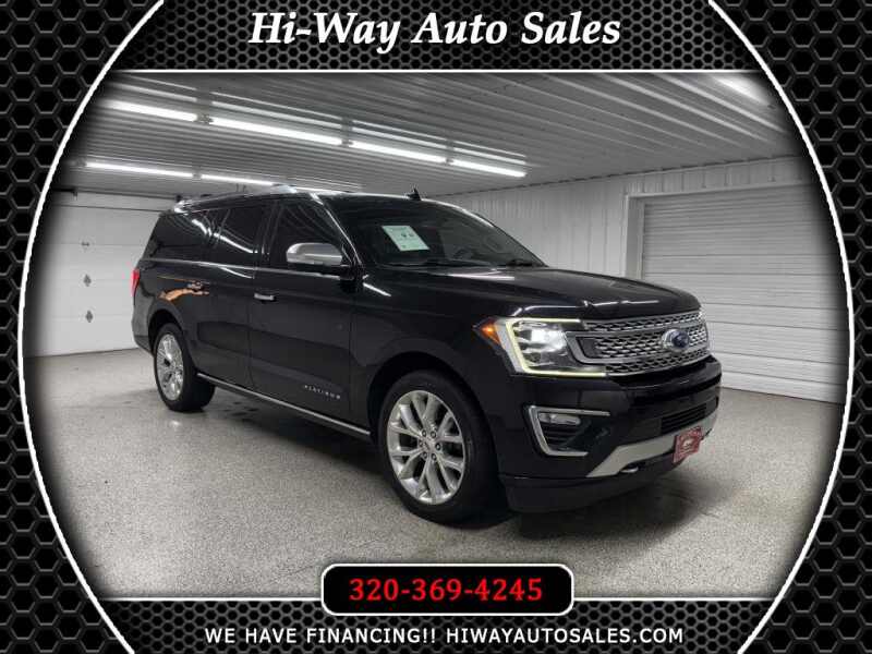 Recent Arrival! 2019 Ford Expedition Max Black Metallic Platinum 4WD 10-Speed Automatic MP3, Bluetooth, Clean CarFax, Leather, Heated Seats, Heated and Cooled Seats, Sunroof/Moonroof, Navigation/GPS/NAVI, Power Lift Gate, Backup Camera, Remote Start, Cruise Control, Steering Wheel Controls, Keyless Entry, USB/AUX ports, MP3 player. Please call/text 320-369-4245 or visit our store 319 4th Avenue South. Pease, MN. Stop by for a test drive, and check out some of our financing options! Available only at Hi-Way Auto Sales, where the customer is #1. Family owned and operated since 1953! Please call/text 320-369-4245 or visit our store 319 4th Avenue South. Pease MN. Stop by for a test drive and check out some of our financing options! Available only at Hi-Way Auto Sales where the customer is #1. Family owned and operated since 1953!Visit Hi-Way Auto Sales online at www.hiwayautosales.com to see more pictures of this vehicle or call us at 320-369-4245 today to schedule your test drive.