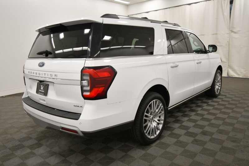 Ford Expedition Max Limited EcoBoost 3.5L V6 GTDi DOHC 24V Twin Turbocharged Carfax 1 owner, Clean Vehicle History Report, 360-Degree Camera w/Split View, 3rd row seats split-bench, Ebony Black Mesh Grille, Emergency communication system SYNC 4 911 Assist, Equipment Group 302A High Package, Exterior Parking Camera Rear, Heated & Ventilated Leather Front Captain's Chairs, Heated rear seats, Heated steering wheel, Heavy-Duty Independent Suspension, Magnetic-Painted Power Deployable Running Boards, Memory seat, Navigation system Connected Navigation, Power Liftgate, Power moonroof, Power-Folding Sideview Mirrors w/Autofold, Radio B&O Sound System by Bang & Olufsen, Reclining 3rd row seat, SiriusXM w/360L, SYNC 4 w/Enhanced Voice Recognition, Tri zone A/C, Ventilated front seats, Wheels 20 Bright Machined Aluminum, Wheels 22 12-Spoke Polished Aluminum. Odometer is 4091 miles below market average!