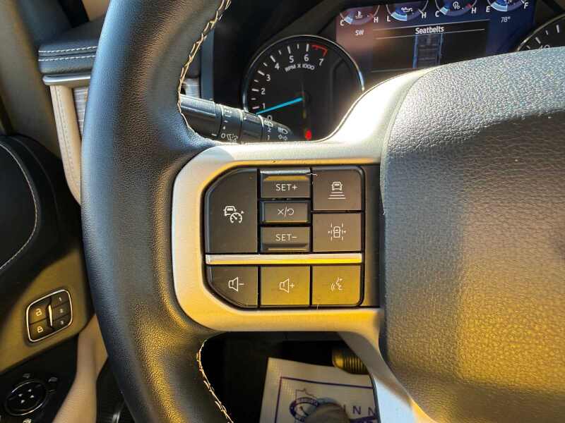 EQUIPMENT GROUP 302A HIGH PACKAGE Wheels 22 12-Spoke Polished Aluminum, Accent Color Twin Spar Grille, Power-Folding Sideview Mirrors w/Autofold, power and heated glass, turn signal indicators, security approach lamps, driver/passenger side memory and body-color caps, Ford Co-Pilot360 Assist 2.0, Reverse Brake Assist, 360-Degree Camera w/Split View, front/rear washer, Magnetic-Painted Power Deployable Running Boards, polished stainless accent, Panoramic Vista Roof, power open/close w/power shade, Heavy-Duty Independent Suspension, Tires P285/45R22 110H AS BSW, 2ND ROW POWER-FOLDING 40/20/40 LEATHER BENCH SEAT 8-passenger seating, tip-and-slide feature, TRANSMISSION 10-SPEED AUTOMATIC W/SELECTSHIFT (STD), ENGINE 3.5L ECOBOOST V6 (STD), ACTIVE PARK ASSIST 2.0 REMOVAL. Ford Limited with Agate Black Metallic exterior and Sandstone interior features a V6 Cylinder Engine with 400 HP at 5000 RPM*. Autocheck 1-Owner AutoCheck One Owner Excellent Condition