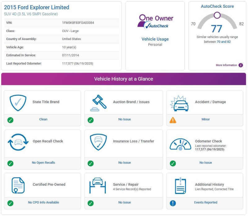 This vehicle is located at our Burnsville store. CLEAN TITLE!! ONE OWNER!! Meticulously maintained 2015 Ford Explorer Limited AWDa perfect blend of luxury, performance, and all-weather capability. This full-size SUV is powered by a responsive 3.5L V6 engine paired with an advanced all-wheel drive system, giving you smooth, confident handling whether you're commuting in the city, taking long road trips, or navigating through snow and rain. The Limited trim offers a premium driving experience with features like plush leather upholstery, heated and cooled front seats, heated second-row seats, power-folding third-row seating, a dual-panel sunroof, and a hands-free power liftgate. Technology is front and center, with a large touchscreen infotainment system, voice-activated navigation, Bluetooth connectivity, a premium Sony audio system, and push-button start. Safety hasnt been overlooked either, thanks to features like a rearview camera, blind spot monitoring, rear cross-traffic alert, and parking sensors. This Explorer has been serviced, has a clean title, and is in excellent condition inside and out. If youre looking for a capable, comfortable, and feature-rich SUV thats ready to go the distance, this 2015 Ford Explorer Limited AWD is an outstanding choice. Stop by RAVMOTORS to test drive this car. Well be more than happy to help you find the right car at the right price. We don't have any pushy or high-pressure salespeople. So come in and see for yourself why we have been the #1 DealerRater used car dealership of the year 5 years in a row. Extended Warranties and Financing options are available. Call us for vehicle availability at 952-456-4041 or email us at ravmotorsinfogmail.com. For more information and a full inventory visit us at www.ravmotors.com. We are open Monday Thursday 10 am 7 pm, Friday - Saturday 930 am 6 pm.