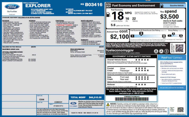 Used 2019 Ford Explorer Sport AWD 4dr SUV