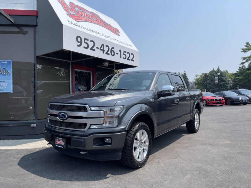 This 2019 Ford F-150 Platinum is a powerful and luxurious full-size pickup equipped with a 3.5L V6 EcoBoost twin-turbocharged engine and a smooth 10-speed automatic transmission. This 4X4 truck delivers strong towing capability and confident off-road performance, with 81,472 miles and a clean title. With no accident history and just two previous owners, its a well-maintained vehicle ready for work or adventure. As the top-tier trim, the Platinum model offers premium features such as leather-trimmed multi-contour seats, heated and ventilated front seats, a heated steering wheel, heated rear seats, power running boards, a twin-panel moonroof, advanced navigation system, 20-inch polished aluminum wheels, and Fords SYNC 3 infotainment system with Apple CarPlay and Android Auto. It also includes adaptive cruise control, blind-spot monitoring, remote start, and a 360-degree camera system for enhanced safety and convenience. Located at 2021 Mainstreet, Hopkins, MN 55343, this truck qualifies for easy financing, welcomes trade-ins, and comes with available warranty options. Nationwide shipping is also availablebringing this capable and refined truck to your driveway no matter where you're located.
