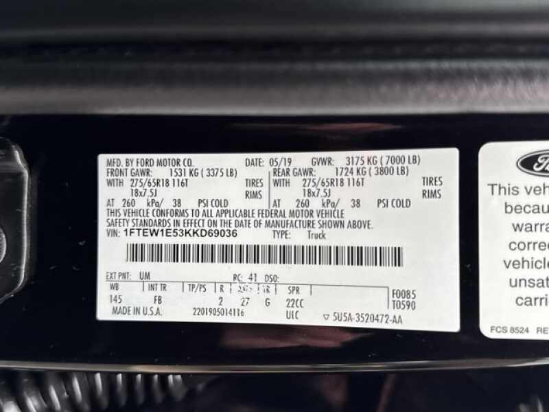 - VIN 1FTEW1E53KKD69036