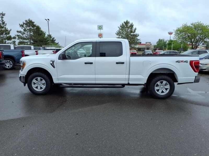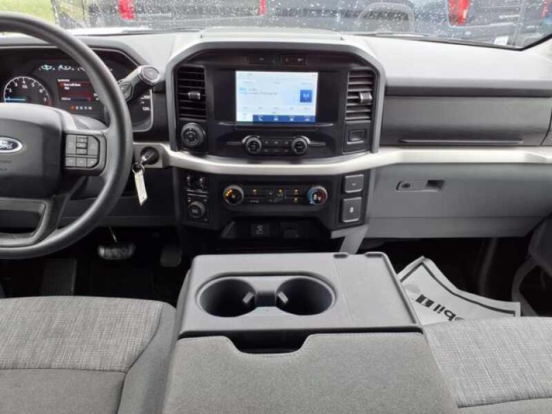 White 2022 Ford F-150 XLT 4WD 10-Speed Automatic 5.0L V8 4WD, ABS brakes, Alloy wheels, Auto High-beam Headlights, Brake assist, Bumpers chrome, Class IV Trailer Hitch Receiver, Cloth 40/20/40 Front Seat, Compass, Delay-off headlights, Driver door bin, Driver vanity mirror, Dual front impact airbags, Dual front side impact airbags, Electronic Stability Control, Emergency communication system SYNC 4 911 Assist, Equipment Group 300A Standard, Front Center Armrest w/Storage, Front fog lights, Front reading lights, Front wheel independent suspension, Fully automatic headlights, Heated door mirrors, Illuminated entry, Integrated Trailer Brake Controller, Low tire pressure warning, Occupant sensing airbag, Outside temperature display, Overhead airbag, Overhead console, Panic alarm, Passenger door bin, Passenger vanity mirror, Power door mirrors, Pro Trailer Backup Assist, Rear reading lights, Rear step bumper, Remote keyless entry, Security system, Speed control, Split folding rear seat, SYNC 4, Tachometer, Telescoping steering wheel, Tilt steering wheel, Traction control, Trailer Tow Package, Trip computer, Variably intermittent wipers, Voltmeter, Wheels 17 Silver Painted Aluminum.