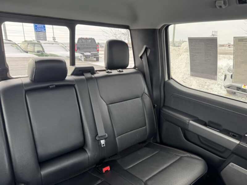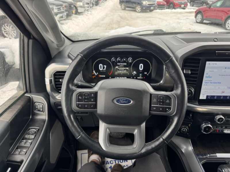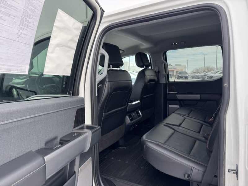 EQUIPMENT GROUP 502A HIGH Rain-Sensing Wipers, Power Tilt/Telescoping Steering Column w/Memory, Onboard 400W Outlet, 2nd outlet in the console and an additional outlet in the bed, Lariat Chrome Appearance Package, 2 chrome front tow hooks, Chrome Single-Tip Exhaust, 6 Bright Polished Running Board, Chrome Door & Tailgate Handles w/Body-Color Bezel, Wheels 18 Chrome-Like PVD, Chrome 2-Bar Grille w/4 Minor Bars, painted silver surround and background mesh, Chrome Skull Caps on Exterior Mirrors, Radio B&O Sound System by Bang & Olufsen, HD radio and 8 speakers including subwoofer, 2nd Row Heated Seats, Power Glass Sideview Mirr w/Chrome Skull Caps, power-folding, heat, turn signal, memory, auto-dimming feature (drivers side) and high-intensity LED security approach lamps, Universal, ENGINE 3.5L V6 ECOBOOST GVWR 7,050 lbs Payload Package, 3.31 Axle Ratio, POWER-DEPLOYABLE RUNNING BOARDS Replaces step bar, BED UTILITY PACKAGE BoxLink, 4 premium locking cleats, LED Box Lighting, Tailgate Step w/Tailgate Work Surface, Power Tailgate, ELECTRONIC LOCKING W/3.55 AXLE RATIO, FORD CO-PILOT360 ASSIST 2.0 Evasive Steering Assist, Intelligent Adaptive Cruise Control w/Stop & Go, lane centering, Speed Sign Recognition, Connected Built-In Navigation, Navigation services require SYNC4 and FordPass Connect (optional on select vehicles), complimentary connect service and the FordPass app (see FordPass Terms for details), Eligible vehicles receive a complimentary 90-day trial of navigation services that begins on the new vehicle warranty start date, Customers must unlock the navigation service trial by activating the eligible vehicle w/a FordPass member account, If not subscribed by the end of the complimentary period, the navigation service will terminate, Connected service and features depend on compatible AT&T network availability, Evolving technology/cellular, TRANSMISSION ELECTRONIC 10-SPEED AUTOMATIC selectable drive modes normal, ECO, sport, tow/haul, slippery, deep snow/sand and mud/rut (STD).