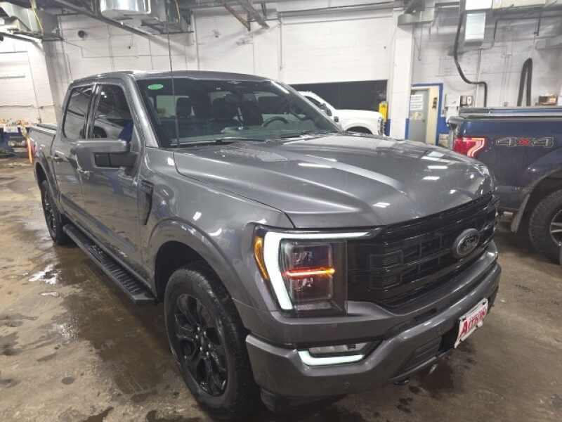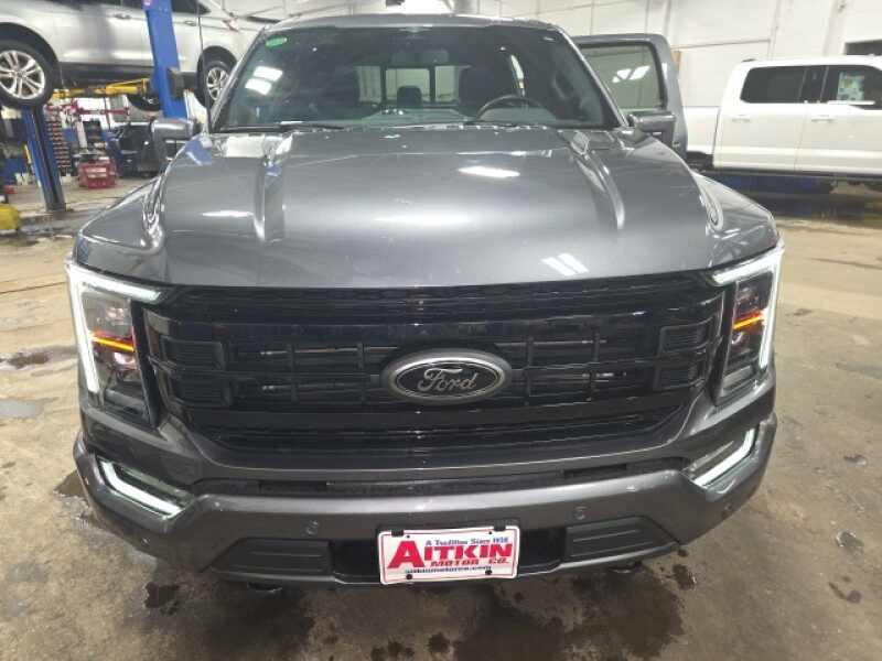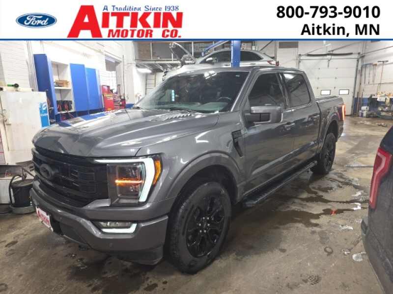 Aitkin Motor Company is pleased to offer this terrific 2023 Ford F-150 Lariat in Gray Metallic, beautifully equipped with Equipment Group 502A High, Ford Co-Pilot360 Assist 2.0 (Connected Built-In Navigation, Evasive Steering Assist, Intelligent Adaptive Cruise Control w/Stop & Go, Intersection Assist, and Speed Sign Recognition), FX4 Off-Road Package, Lariat Sport Appearance Package (Accent-Color Angular Step Bars, Body-Color Front & Rear Bumpers, Box Side Decals, Chrome Single-Tip Exhaust, and Dark 2-Bar & 1 Minor Bar Style Grille), 3.31 Axle Ratio, 4-Wheel Disc Brakes, 8 Speakers, ABS brakes, Adjustable pedals, Air Conditioning, Alloy wheels, AM/FM radio SiriusXM with 360L, Auto High-beam Headlights, Auto-dimming door mirrors, Auto-dimming Rear-View mirror, Automatic temperature control, Brake assist, Bumpers chrome, Chrome wheels, Class IV Trailer Hitch Receiver, Compass, Delay-off headlights, Driver door bin, Driver vanity mirror, Dual front impact airbags, Dual front side impact airbags, Electronic Locking w/3.31 Axle Ratio, Electronic Stability Control, Emergency communication system SYNC 4 911 Assist, Exterior Parking Camera Rear, Front anti-roll bar, Front Bucket Seats, Front Center Armrest, Front dual zone A/C, Front fog lights, Front reading lights, Front wheel independent suspension, Fully automatic headlights, Garage door transmitter, Heated door mirrors, Heated front seats, Heated steering wheel, Illuminated entry, Inclination/Intrusion Sensor Removal, Leather-Trimmed Bucket Seats, Low tire pressure warning, Memory seat, Occupant sensing airbag, Outside temperature display, Overhead airbag, Overhead console, Panic alarm, Partitioned Lockable Fold-Flat Storage, Passenger door bin, Passenger vanity mirror, Pedal memory, Power door mirrors, Power driver seat, Power passenger seat, Power steering, Power windows, Radio data system, Radio B&O Sound System by Bang & Olufsen, Radio B&O Unleashed Sound System by Bang & Olufsen, Rear reading lights, Rear seat center armrest, Rear step bumper, Rear window defroster, Remote keyless entry, Security system, Speed control, Speed-sensing steering, Split folding rear seat, Steering Wheel Heat Removal (DISC), Steering wheel mounted audio controls, SYNC 4 w/Enhanced Voice Recognition, Tachometer, Telescoping steering wheel, Tilt steering wheel, Tough Bed Spray-In Bedliner, Traction control, Tray Style Floor Liner (47W), Trip computer, Turn signal indicator mirrors, Twin Panel Moonroof, Variably intermittent wipers, Ventilated front seats, Voltmeter, and Wheels 18 Chrome-Like PVD!