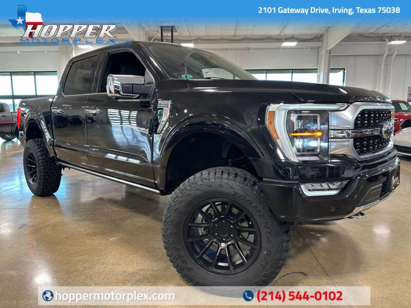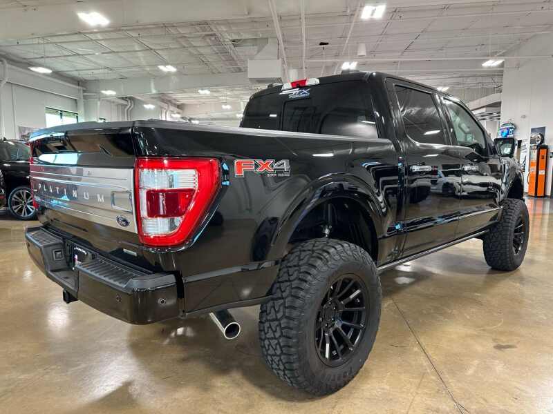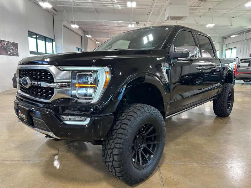 2023 Ford F-150 Platinum 4x4 Full Suspension Lift 37 Tires, FX4 Off-Road Package, Power Tailgate, Agate Black Metallic 4D SuperCrew 4WD 10-Speed Automatic 3.5L V6 EcoBoost 4WD, 20 Polished Aluminum Wheels, 360 Degree Camera, 4-Wheel Disc Brakes, 4x4 FX4 Off-Road Bodyside Decal, 8 Speakers, ABS brakes, Active Park Assist 2.0, Active Park Assist 2.0 Removal, Adjustable pedals, Air Conditioning, Alloy wheels, AM/FM radio SiriusXM with 360L, Auto High-beam Headlights, Auto Start-Stop Removal (DISC), Auto tilt-away steering wheel, Auto-dimming door mirrors, Auto-dimming Rear-View mirror, Automatic temperature control, Bed Utility Package, BoxLink, Brake assist, Bumpers body-color, Class IV Trailer Hitch Receiver, Compass, Delay-off headlights, Driver door bin, Driver vanity mirror, Dual front impact airbags, Dual front side impact airbags, Electronic Locking w/3.31 Axle Ratio, Electronic Stability Control, Emergency communication system SYNC 4 911 Assist, Equipment Group 701A High, Extended Range 36 Gallon Fuel Tank, Exterior Parking Camera Rear, Ford BlueCruise 1.0, Front & Rear Molded Splash Guards, Front anti-roll bar, Front Bucket Seats, Front Center Armrest, Front dual zone A/C, Front fog lights, Front reading lights, Front wheel independent suspension, Fully automatic headlights, FX4 Off-Road Package, Garage door transmitter, Heated door mirrors, Heated front seats, Heated rear seats, Heated steering wheel, Hill Descent Control, Illuminated entry, Integrated Trailer Brake Controller, LED Box Lighting, LED Sideview Mirror Spotlights, Low tire pressure warning, Memory seat, Monotube Rear Shocks, Multicontour Seats w/Active Motion Removal, Navigation system Connected Navigation, Occupant sensing airbag, Off-Road Tuned Front Shock Absorbers, Outside temperature display, Overhead airbag, Overhead console, Panic alarm, Passenger door bin, Passenger vanity mirror, Pedal memory, Power door mirrors, Power driver seat, Power passenger seat, Power steering, Power Tailgate, Power windows, Pro Trailer Backup Assist & Pro Trailer Hitch Assist, Radio data system, Radio B&O Sound System by Bang & Olufsen, Radio B&O Unleashed Sound System by Bang & Olufsen, Rain sensing wipers, Rear reading lights, Rear seat center armrest, Rear step bumper, Rear window defroster, Remote keyless entry, Rock Crawl Mode, Security system, Speed control, Speed-sensing steering, Split folding rear seat, Steering Wheel Heat Removal (DISC), Steering wheel memory, Steering wheel mounted audio controls, SYNC 4 w/Enhanced Voice Recognition, Tachometer, Tailgate Step w/Tailgate Work Surface, Telescoping steering wheel, Tilt steering wheel, Traction control, Tray Style Floor Liner, Trip computer, Turn signal indicator mirrors, Unique Multi-Contour Leather Bucket Seats, Variably intermittent wipers, Ventilated front seats, Voltmeter, Wheel Well Liner.