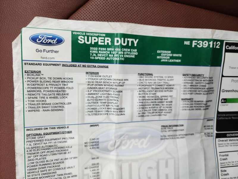 Used 2022 Ford F-250 King Ranch CREWSHORTKING RANCH73L V8 GAS4WDTREMOR1 OWNER