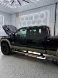 The exterior of the F-350 Super Duty Lariat exudes a rugged and commanding presence, with its bold grille, muscular fenders, and stunning chrome accents. The two-tone paint job adds a touch of sophistication, making this truck stand out on the road.