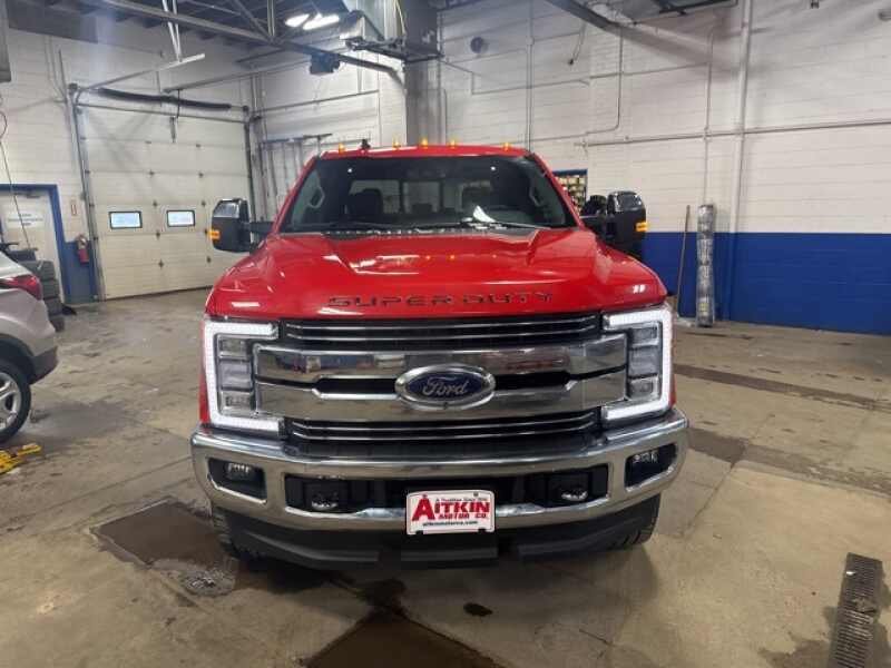 Aitkin Motor Company is honored to offer this attractive-looking 2019 Ford F-350SD Lariat in Race Red, beautifully equipped with 5th Wheel/Gooseneck Hitch Prep Package, Chrome Package (6 Angular Chrome Step Bars, Body-Color Door Handles w/Chrome Insert, Chrome Exhaust Tip, Unique Chrome Mirror Caps, and Wheels 18 Chrome PVD Aluminum), FX4 Off-Road Package (Hill Descent Control, Off-Road Specifically Tuned Shock Absorbers, and Unique FX4 Off-Road Box Decal), GVWR 11,300 lb Payload Package, Lariat Ultimate Package (Ambient Lighting - Fixed Color, Automatic High Beam, Easy Entry/Exit Memory Driver's Seat Feature, Intelligent Access w/Push-Button Start, LED Box Lighting, Memory Power-Adjustable Pedals, Power Heated/Cooled Driver Seat w/Memory, Power Heated/Cooled Passenger Seat, Power Telescoping/Tilt Steering Wheel/Column, PowerScope Trailer Tow Mirrors w/Memory, Remote Start System, Remote Tailgate Release, Tailgate Step & Handle, and Voice-Activated Navigation), Order Code 618A, Snow Plow Prep Package, 10 Speakers, 110V/400W Outlet, 4-Wheel Disc Brakes, ABS brakes, Adjustable pedals, Air Conditioning, Alloy wheels, AM/FM radio SiriusXM, AppLink/Apple CarPlay and Android Auto, Auto-dimming Rear-View mirror, Automatic temperature control, BLIS Blind Spot Information System, Brake assist, Bumpers chrome, Compass, Delay-off headlights, Driver door bin, Driver vanity mirror, Dual Extra Heavy-Duty Alternators (Total 377-Amps), Dual front impact airbags, Dual front side impact airbags, Electronic Stability Control, Emergency communication system SYNC 3 911 Assist, Engine Block Heater, Exterior Parking Camera Rear, Flow-Through Console, Front anti-roll bar, Front Bucket Seats, Front Center Armrest, Front dual zone A/C, Front fog lights, Front Leather Seating Surfaces 40/Console/40, Front reading lights, Fully automatic headlights, Heated door mirrors, Heated Rear Seats, Illuminated entry, Leather steering wheel, LED Roof Clearance Lights, Low tire pressure warning, Outside temperature display, Overhead airbag, Overhead console, Panic alarm, Passenger door bin, Passenger vanity mirror, Power door mirrors, Power driver seat, Power passenger seat, Power steering, Power windows, Quad Beam LED Headlamps & LED Taillamps, Radio data system, Radio B&O Sound System by Bang & Olufsen, Rapid-Heat Supplemental Cab Heater, Rear CHMSL Camera, Rear Parking Sensors, Rear reading lights, Rear seat center armrest, Rear step bumper, Rear window defroster, Remote keyless entry, Security system, SiriusXM Radio, Speed control, Split folding rear seat, Steering wheel mounted audio controls, SYNC 3 Communications & Entertainment System, Tachometer, Telescoping steering wheel, Tilt steering wheel, Traction control, Trip computer, Turn signal indicator mirrors, Twin Panel Power Moonroof, Ultimate Trailer Tow Camera System, Universal Garage Door Opener (UGDO), Upfitter Switches (6), Variably intermittent wipers, and Wheels 18 Bright Machined Cast Aluminum!