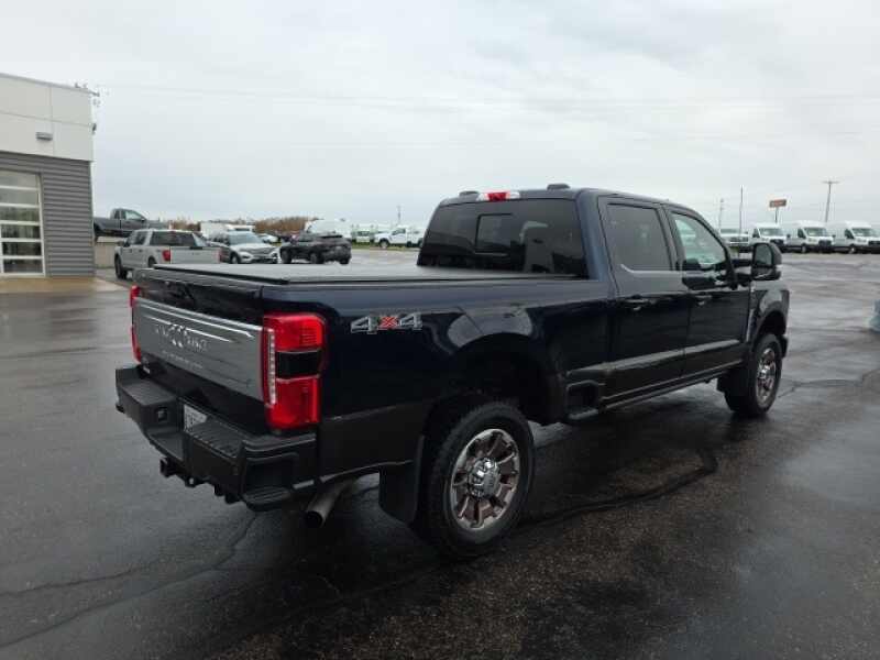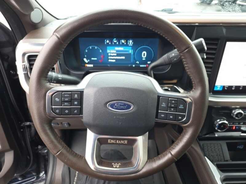 Osseo Ford is proud to offer this trusty 2025 Ford F-350SD King Ranch in Antimatter Blue Metallic, beautifully equipped with 5th Wheel/Gooseneck Hitch Prep Package, Order Code 710A, Snow Plow Prep Package, 4WD, Navigation System, 14 Speakers, 4-Wheel Disc Brakes, 410 Amp Dual Alternators, ABS brakes, Adjustable pedals, Air Conditioning, All-Weather Floor Mats, Alloy wheels, AM/FM radio SiriusXM with 360L, Auto High-beam Headlights, Auto tilt-away steering wheel, Auto-dimming Rear-View mirror, Automatic temperature control, Brake assist, Compass, Delay-off headlights, Driver door bin, Driver vanity mirror, Dual front impact airbags, Dual front side impact airbags, Electronic Stability Control, Electronic-Locking w/3.73 Axle Ratio, Emergency communication system SYNC 4 911 Assist, Flow-Through Console, Front & Rear Wheel Well Liners (Pre-Installed), Front anti-roll bar, Front Bucket Seats, Front Center Armrest, Front dual zone A/C, Front fog lights, Front License Plate Bracket, Front reading lights, Front Splash Guards/Mud Flaps (Pre-Installed), Fully automatic headlights, Garage door transmitter, Heads-Up Display, Heated door mirrors, Heated front seats, Heated rear seats, Heated steering wheel, Illuminated entry, Leather steering wheel, LED Roof Clearance Lights, Low tire pressure warning, Max Recline Seats, Memory seat, Outside temperature display, Overhead airbag, Overhead console, Panic alarm, Passenger door bin, Passenger vanity mirror, Pedal memory, Power door mirrors, Power driver seat, Power passenger seat, Power steering, Power windows, Radio B&O Unleashed Sound System by Bang & Olufsen, Rain sensing wipers, Rear reading lights, Rear seat center armrest, Rear Splash Guards/Mud Flaps (Pre-Installed), Rear step bumper, Rear window defroster, Remote keyless entry, Security system, SiriusXM Radio w/360L, Speed control, Split folding rear seat, Steering wheel memory, Steering wheel mounted A/C controls, Steering wheel mounted audio controls, SYNC 4 w/Enhanced Voice Recognition, Tachometer, Telescoping steering wheel, Tilt steering wheel, Traction control, Trip computer, Turn signal indicator mirrors, Twin Panel Power Moonroof, Unique King Ranch Leather 40/Console/40 Seats, Upfitter Switches (6), Variably intermittent wipers, Ventilated front seats, and Wheels 20 Bright Machined Cast Aluminum! CLEAN AUTO CHECK, ONE OWNER, LOCAL TRADE, AWD / 4X4 / 4WD, BOUGHT HERE NEW, SERVICED HERE, 4WD, 5th Wheel/Gooseneck Hitch Prep Package, Navigation System, Order Code 710A, Snow Plow Prep Package.