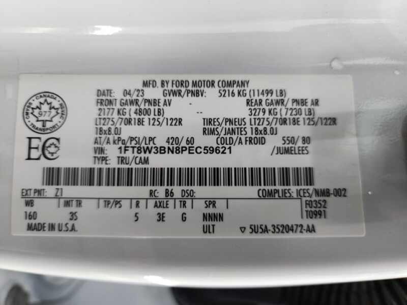 - VIN 1FT8W3BN8PEC59621