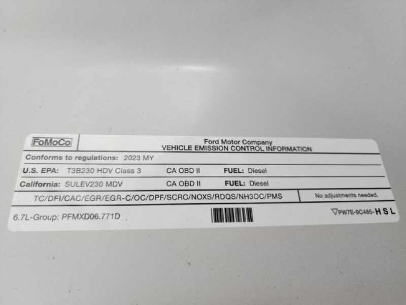 - ENGINE 6.7L 4V OHV POWER STROKE V8 TURBO DIESEL B20 -inc manual push-button engine-exhaust braking Operator Commanded Regeneration (OCR) and intelligent oil-life monitor 190 Amp Alternator (Diesel) 34 Gallon Fuel Tank GVWR 11 200 lb Payload Package 3.31 Axle Ratio Dual 68 AH/65 AGM Batteries